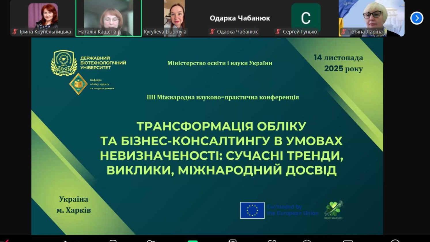 14 листопада 2025 року науково-педагогічні працівники кафедри обліку та оподаткування Вінницького торговельно-економічного інституту долучилися до роботи ІІІ Міжнародної науково-практичної конференції «Трансформація обліку та бізнес-консалтингу в умовах невизначеності: сучасні тренди, виклики, міжнародний досвід», організованої Державним біотехнологічним університетом — партнером ВТЕІ у сфері наукової та освітньої співпраці.