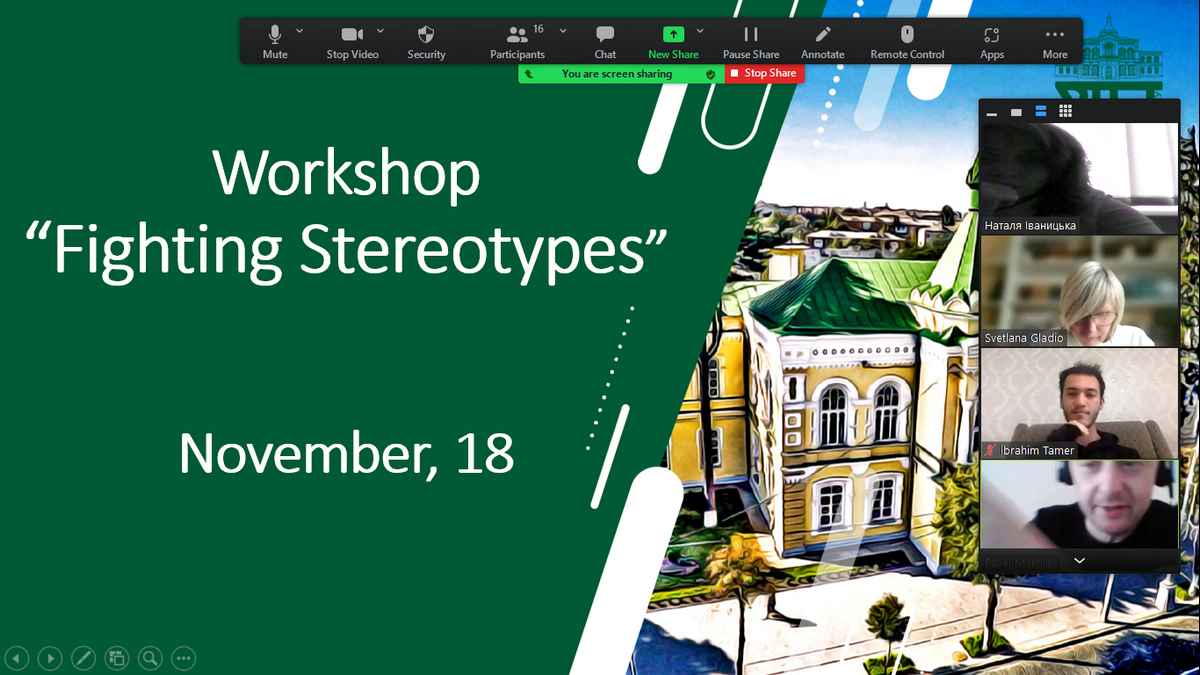 18 листопада 2021 року кафедра іноземної філології та перекладу разом із волонтерами Європейського корпусу солідарності провела Workshop «Fighting Stereotypes». Студенти спеціальності «Філологія» мали змогу подискутувати щодо впливу стереотипів на наше життя.