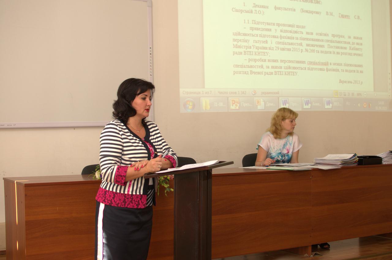 1 вересня 2015 року відбулось засідання Вченої ради ВТЕІ КНТЕУ