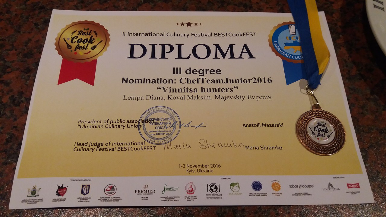 1-3 листопада 2016 року відбувся ІІ Міжнародний кулінарний конкурс «BESTCookFEST – 2016», що проводиться за рекомендаціями Всесвітньої Асоціації Кулінарних Союзів (Worldchefs) за номінаціями (попереднє виконання), практичні змагання (робота безпосередньо на території змагань) індивідуальної та командної форм участі. В номінації «ChefTeam 2016» - Краща команда кухарів 2016 (команда з трьох кухарів), клас «Чорна скринька» здобувачі 3 курсу напряму підготовки «Харчові технології та інженерія» Лемпа Діана, Коваль Максим та Маєвський Євгеній зайняли почесне третє місце.