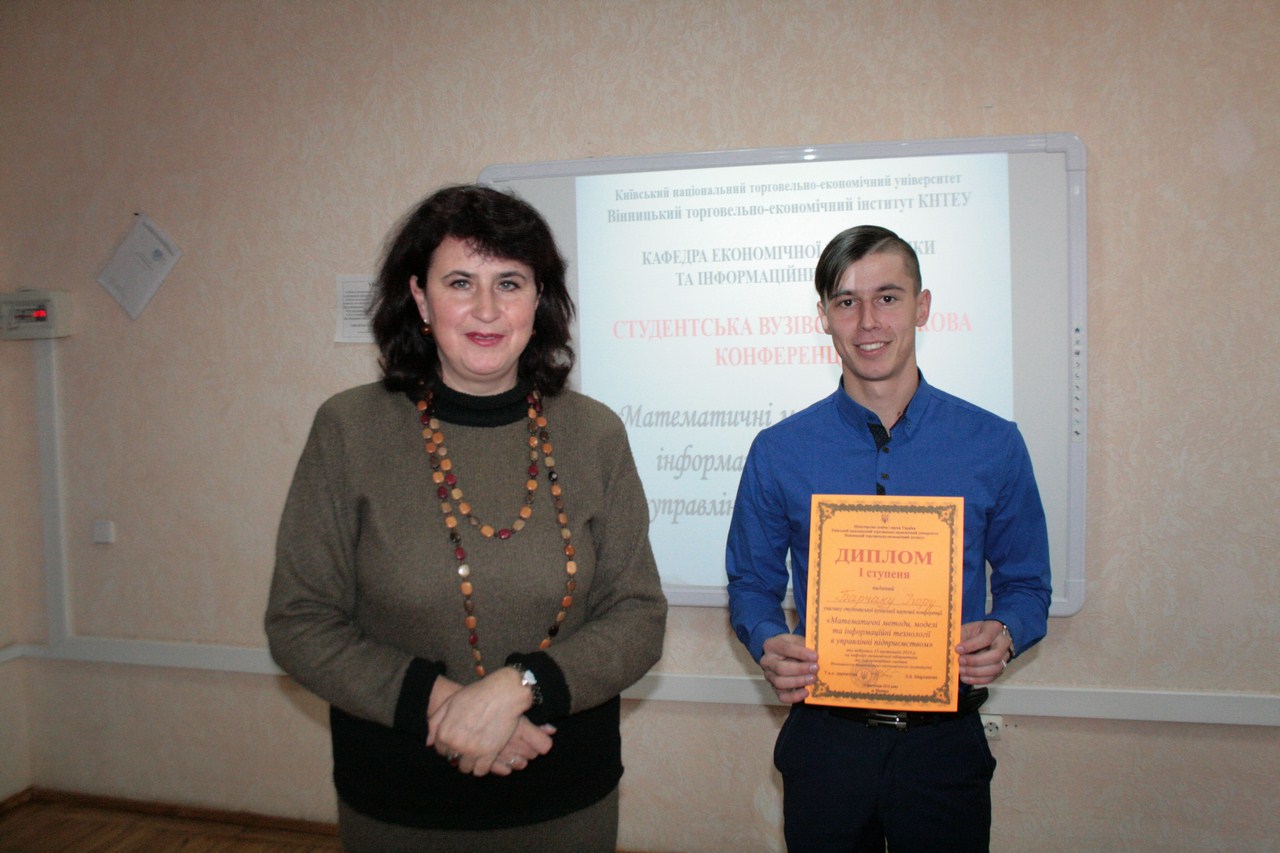 15 листопада 2016 року на базі кафедри економічної кібернетики та інформаційних систем Вінницького торговельно-економічного інституту КНТЕУ проведено вузівську студентську наукову конференцію на тему: «Математичні методи, моделі та інформаційні технології в управлінні підприємством». В конференції взяли участь 35 здобувачів вищої освіти, які підготували 29 доповідей за такими науковими напрямками: «Математичні методи, моделі аналізу і прогнозування соціально-економічних та фінансово-господарських систем і процесів» та «Впровадження інформаційних технологій в управління бізнес-процесами, створення єдиного інформаційного середовища для забезпечення ефективного управління підприємством».