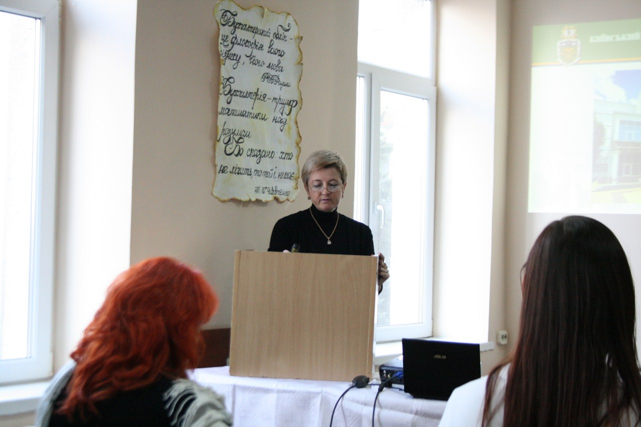 Оскільки зустріч приурочена до святкування 70-річчя КНТЕУ, всі присутні мали змогу ознайомитись з презентацією «Славні сторінки історії, гарних традицій та вагомих здобутків Вінницького торговельно-економічного інституту КНТЕУ», супровід якої забезпечила к.пед.н., доцент Лобачева І.Ф.