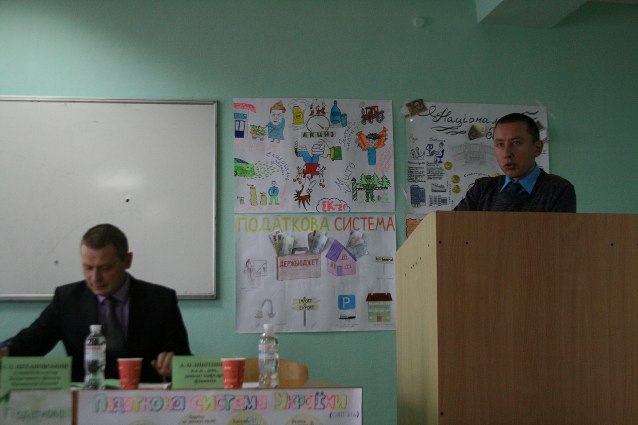 В проведенні круглого столу взяли участь викладачі кафедри фінансів, маркетингу та реклами, студенти обліково-фінансового факультету ВТЕІ та запрошені гості – О.О. Прутська, д.е.н., проф., завідувач кафедри фінансів, банківської справи та страхування ВНАУ та І.Л. Цехановський, головний бухгалтер Департаменту фінансів Вінницької обласної державної адміністрації.