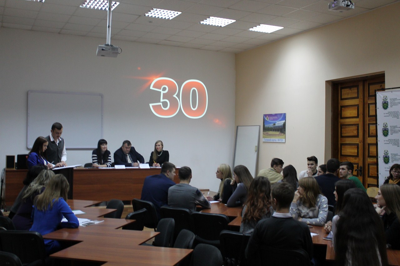 У грі брали участь команди від Вінницького торговельно-економічного інституту КНТЕУ, Вінницького торговельно-економічного коледжу КНТЕУ та Вінницького кооперативного інституту. Загальна кількість учасників - 18 здобувачів вищої освіти, по 6 учасників від кожної команди. До складу журі ввійшли: декан ОФФ Бондаренко Валерій Михайлович, заступник декана ФТМСО з навчально-методичної роботи Чорна Наталія Миколаївна, заступник декана ФЕМП з навчально-методичної роботи Білоус Ірина Миколаївна. Зі вступним словом виступила директор ВТЕІ КНТЕУ Замкова Наталія Леонідівна, побажавши всім учасникам гарної гри та перемоги.