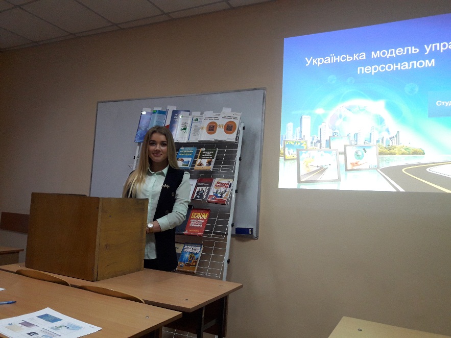 - Семененко Н. (гр. МО-31) доповідь на тему: «Українська модель управління персоналом» (науковий керівник Соколовська В.В.).