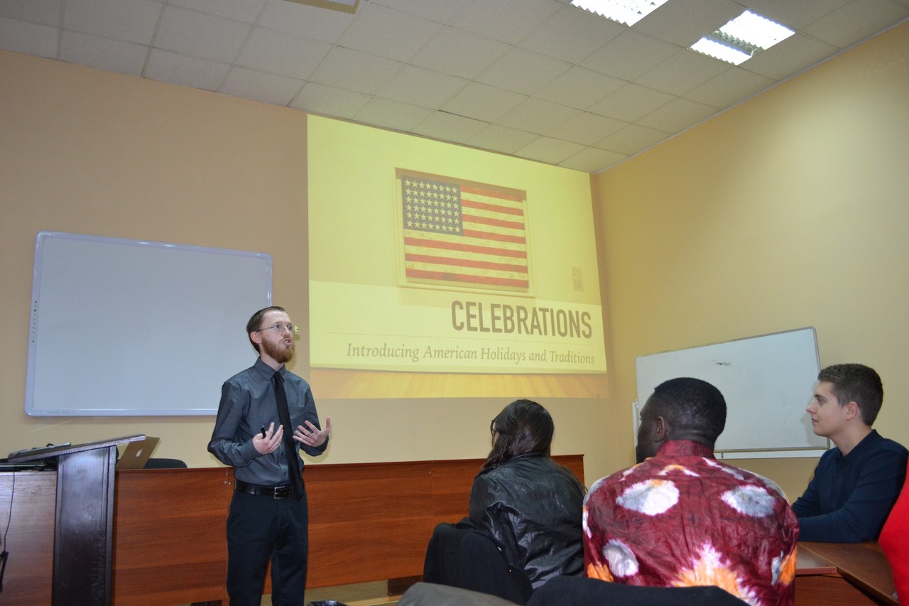 Круглий стіл проводився в форматі відкритої дискусії стосовно сучасних тенденцій мультикультуралізму як важливого складника розвитку мовної особистості студента. Проблемні питання культурологічного, лінгвістичного, етнічного, соціально-комунікативного, психологічного аспектів міжкультурної комунікації з позицій студентоцентризму висловив у доповіді «Cultural diversity in the perspective of American celebrations» фахівець з англійської мови Тадеуш Маклеарі (Секція зв’язків з громадськістю Амбасади США у м. Київ).
