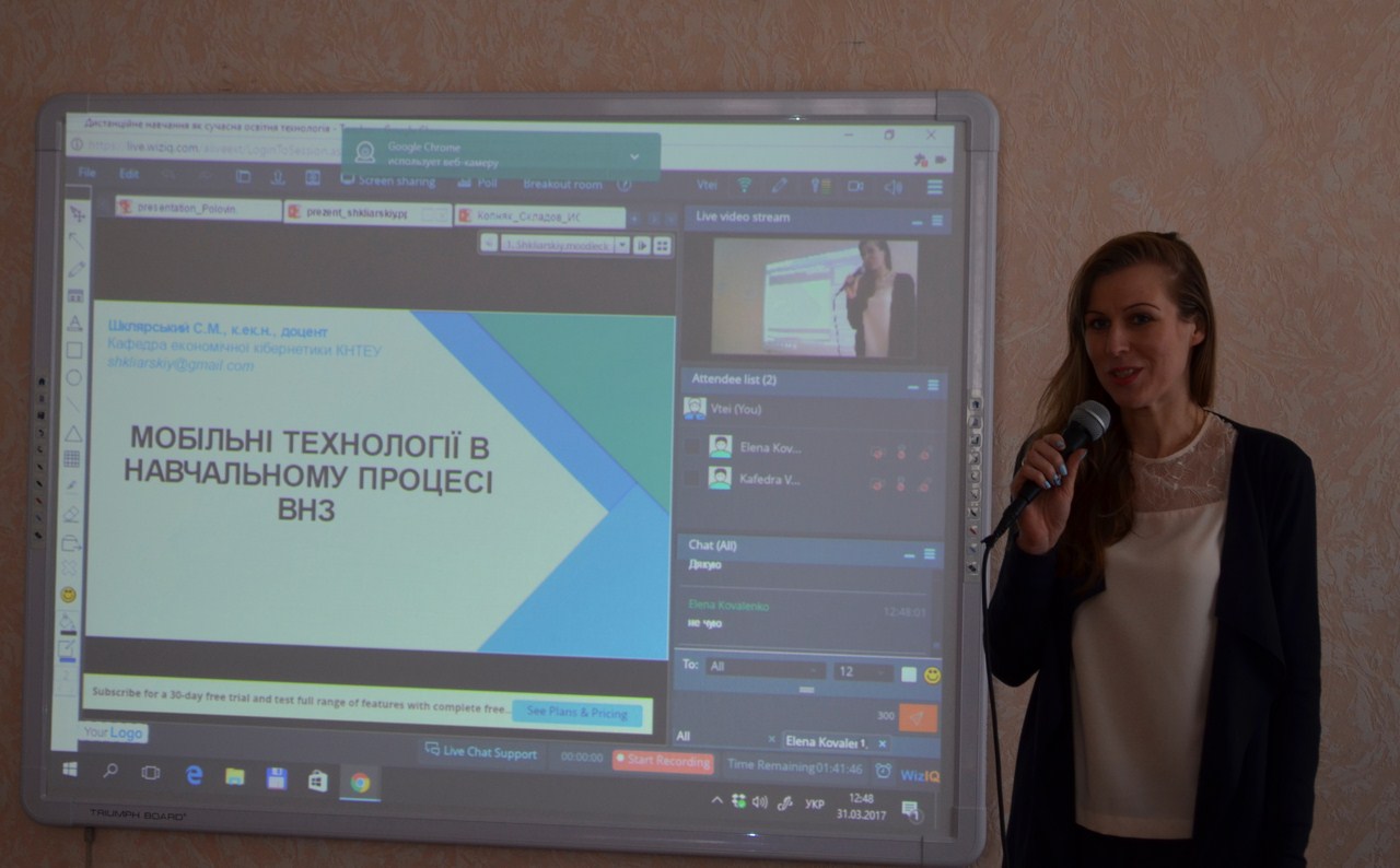 31 березня 2017 року на кафедрою економічної кібернетики та інформаційних систем було проведено міжвузівський вебінар «Дистанційне навчання як сучасна освітня технологія» в режимі on-line на платформі WizIQ. У вебінарі прийняли участь ряд навчальний закладів, а саме: Київський національний торговельно-економічний університет, Харківський торговельно-економічний інститут КНТЕУ, Вінницький національний технічний університет, Вінницький державний педагогічний університет ім. М. Коцюбинського, Івано-Франківський національний технічний університет нафти і газу, Вінницький національний аграрний університет, Вінницький навчально-науковий інститут економіки Тернопільського національного економічного університету. До уваги присутніх було запропоновано яскраві презентації учасників вебінару та on-line обговорення доповідей.
