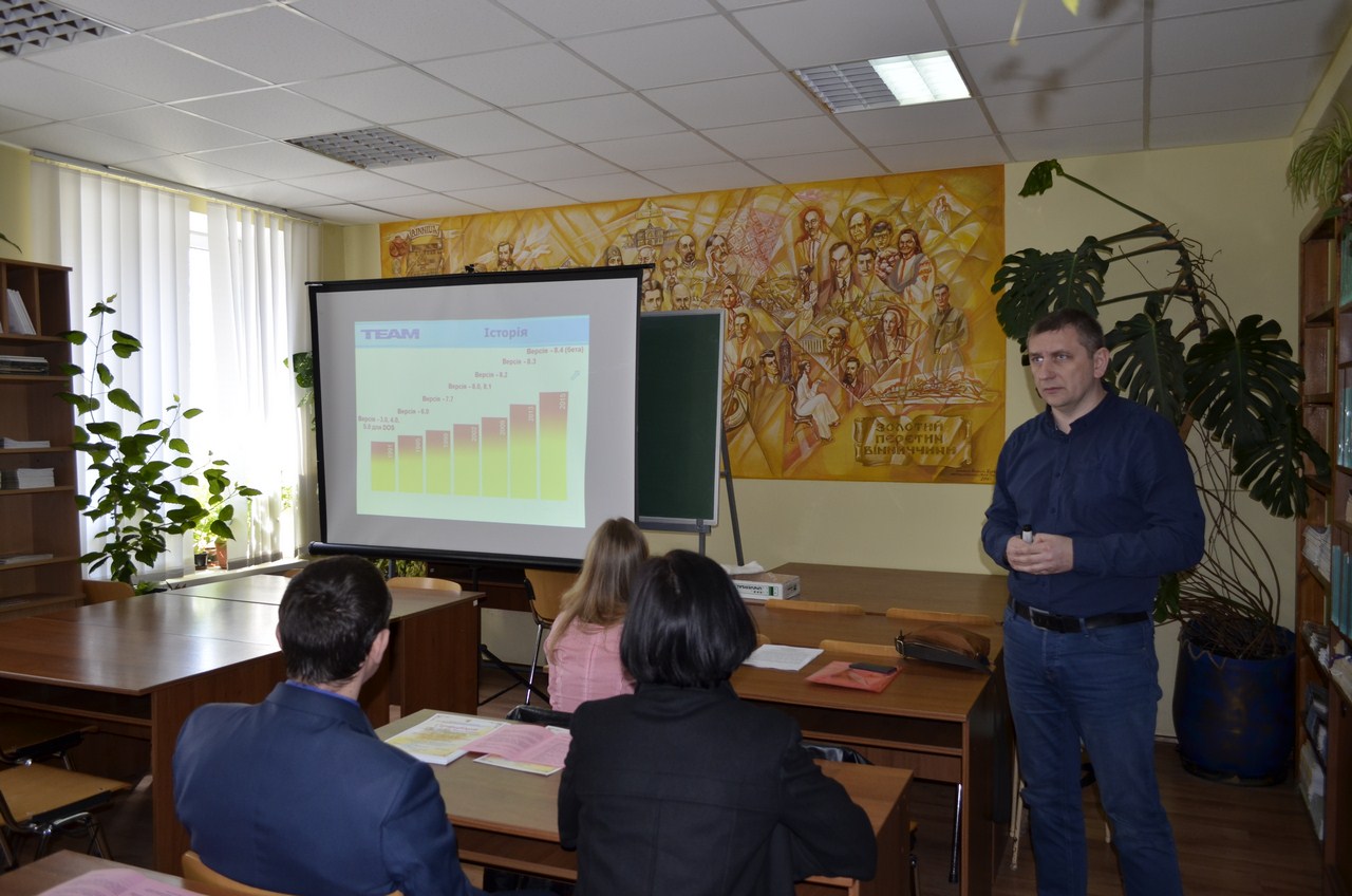 Для участі у заході буди запрошені провідні фахівці ТОВ «ТЕАМ Лтд»: начальник відділу програмного забезпечення Далека Анатолій Вікторович та менеджер з адміністративної роботи Семененко Катерина Григорівна, які розповіли слухачам про основні етапи проектування інформаційних систем, стадії автоматизації підприємства на платформі «1С: Підприємство 8», процес навчання персоналу, підтримку впроваджених рішень, сертифікацію фахівців та багато іншого.