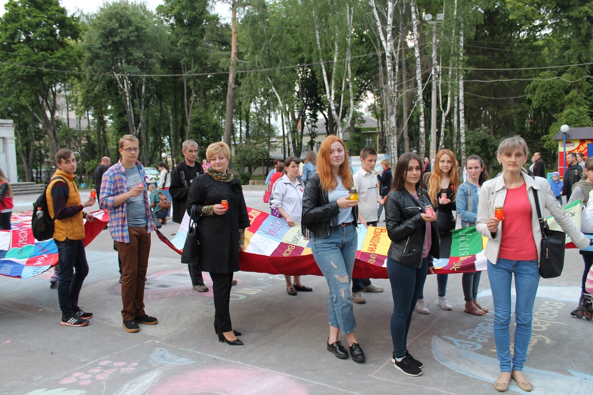 Учасники акції під час свічкової ходи несли 10-метровий квілт, на якому вишиті імена усіх вінничан померлих від СНІДу.