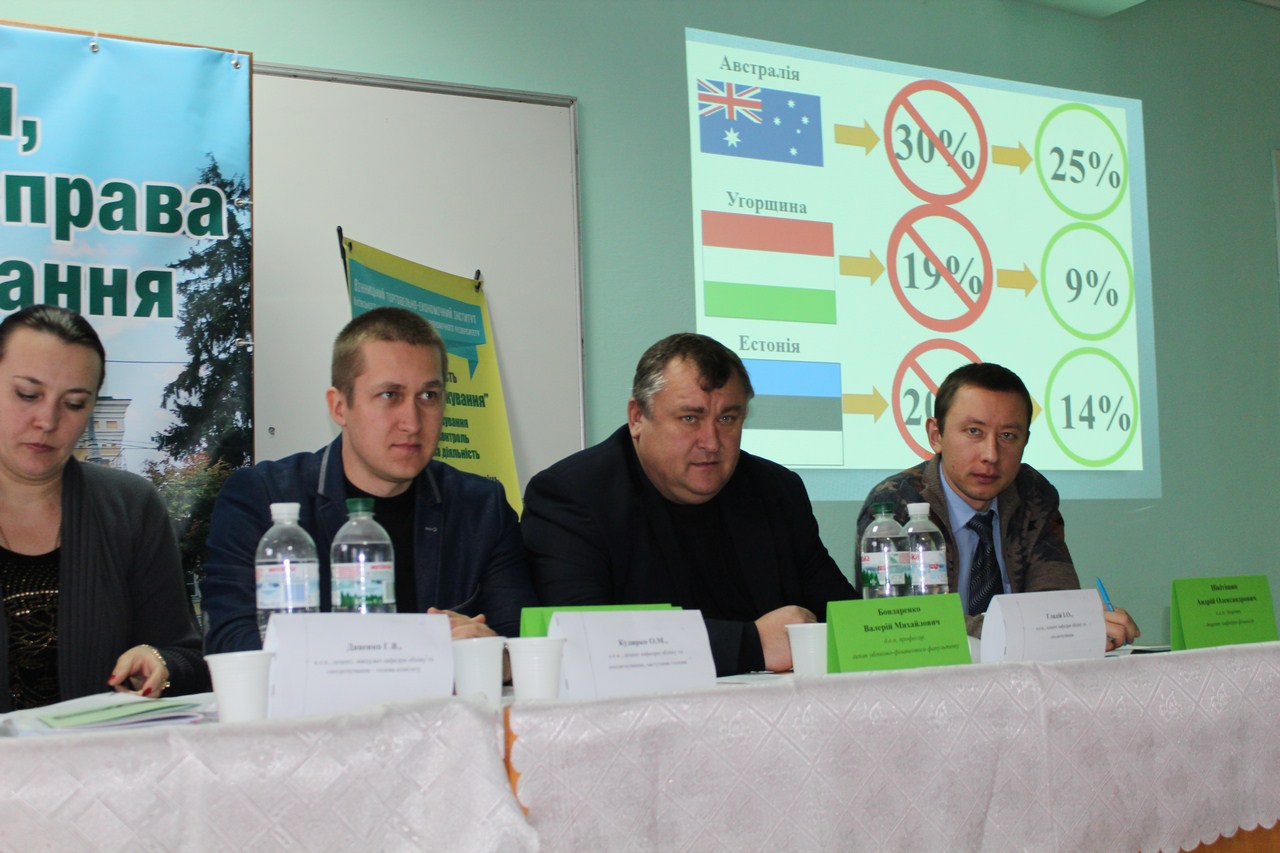 До активної дискусії долучилися декан обліково-фінансового факультету д.е.н., професор Бондаренко В.М., а також аспіранти, молоді вчені, викладачі кафедри фінансів, кафедри обліку та оподаткування, зокрема: к.е.н., заступник декана з навчально-методичної роботи Покиньчереда В.В., к.е.н., доцент, завідувач кафедри обліку та оподаткування Даценко Г.В., к.е.н., доцент, заступник завідувача кафедри фінансів Гнидюк І. В., к.е.н., доцент Нікітішин А.О., к.е.н., доцент Романовська Ю.А., к.е.н. Демченко О.П., к.е.н. Гатаулліна Е.І., асис. Громова А.Є., к.е.н., доцент Гладій І. О., к.е.н., доцент Кудирко О. М., к.е.н., доцент Дзюба О.М., к.п.н., доцент Лобачева І.Ф., к.п.н., доцент Овсюк Н. В., к.е.н., ст. викладач Ковальчук С. П., к.е.н., ст..викладач Майстер Л. А.
