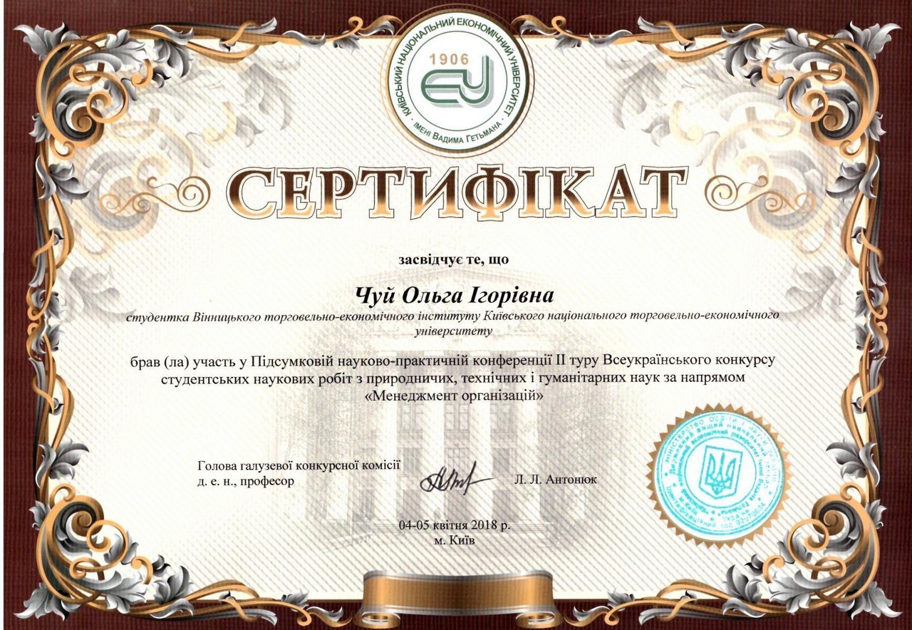 4-5 квітня 2018 року на базі ДВНЗ «Київський національний економічний університет ім. В.Гетьмана» відбувся ІІ тур Всеукраїнського конкурсу студентських наукових робіт з галузей знань і спеціальностей за напрямом «Менеджмент організацій».