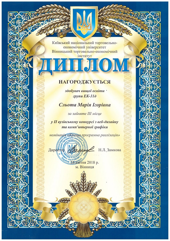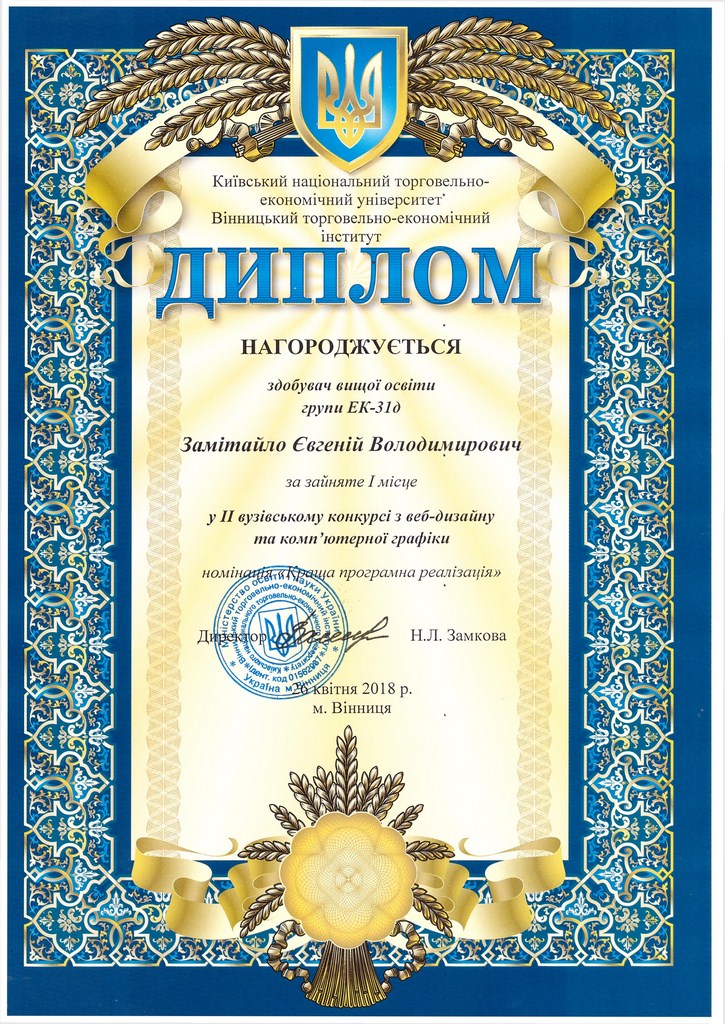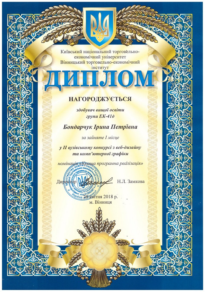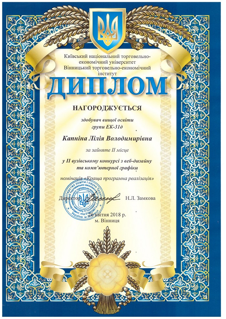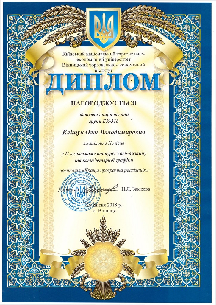 З 10 по 20 квітня 2018 року на базі кафедри економічної кібернетики та інформаційних систем Вінницького торговельно-економічного інституту КНТЕУ відбувся ІІ вузівський конкурс із веб-дизайну та комп’ютерної графіки, в якому взяли участь здобувачі освітнього ступеня «бакалавр» освітньої програми «Економічна кібернетика» груп ЕК-31д, ЕК-41д.