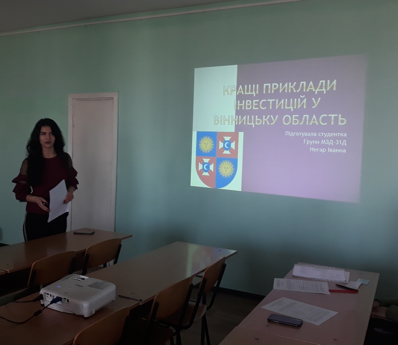 За підсумками, Соколовська В.В. завідувач кафедри менеджменту та адміністрування, відзначила, що найкращою стала доповідь Негар Іванни, здобувача вищої освіти групи МЗД-31д на тему: «Кращі приклади інвестиції у Вінницьку область».