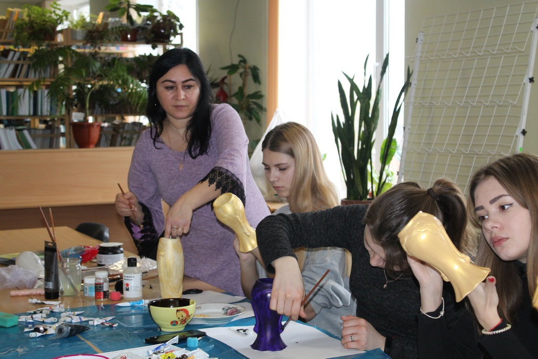 01 березня 2019 року, в рамках святкування тижня факультету економіки, менеджменту та права, майстринею-художницею Галиною Кривуш було проведено майстер-клас по художньому оформленню скла та кераміки в техніці кракелюр.