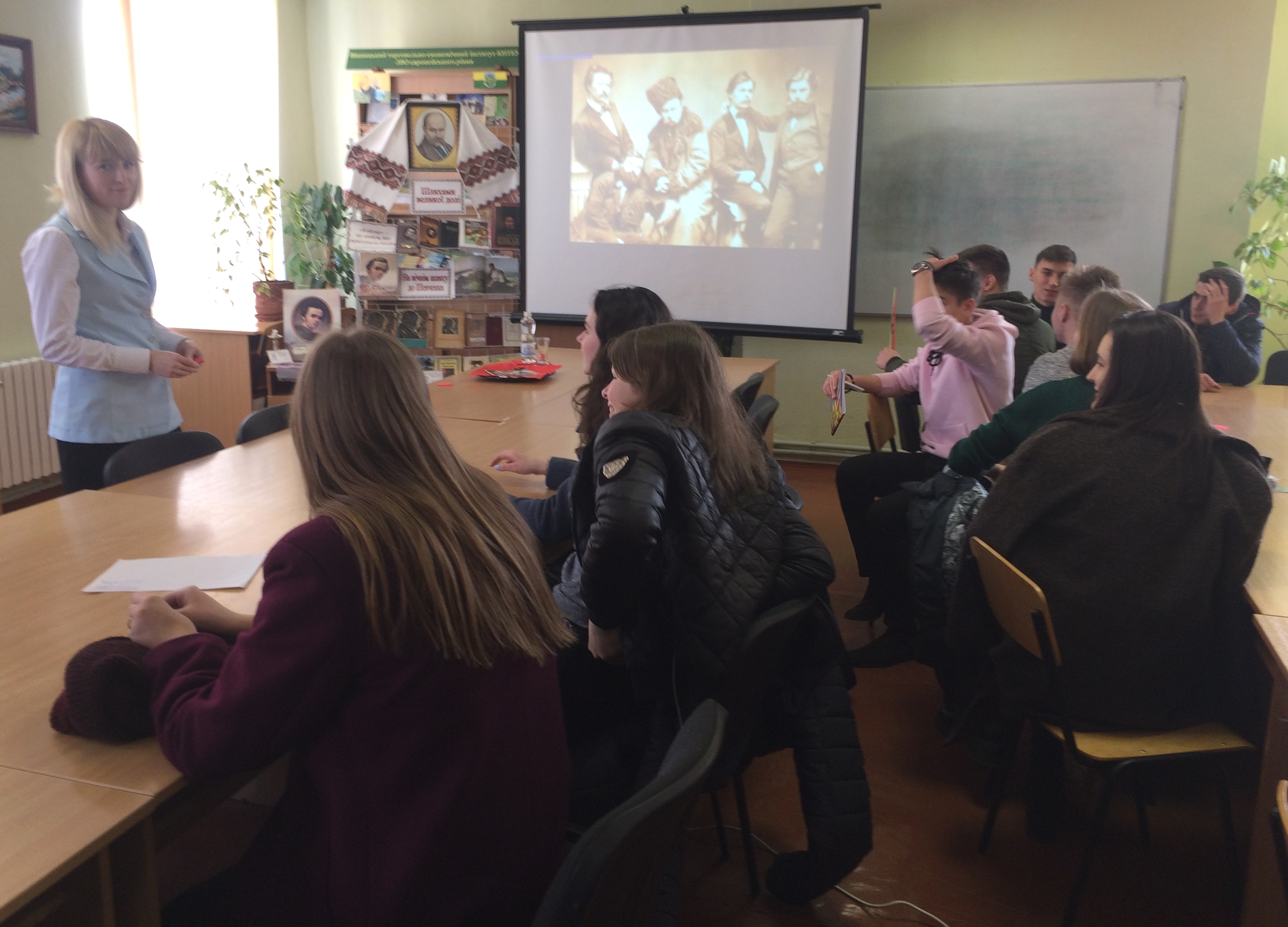 Гостею заходу була кандидат філологічних наук, доцент кафедри української літератури ВДПУ ім. М. Коцюбинського - Алла Петрівна Віннічук, яка цікаво розповіла про маловідомі факти із життя Кобзаря. Затамувавши подих, студенти слухали про Шевченка не лише борця, а й ніжного й вразливого душею, чистого серцем лірика.