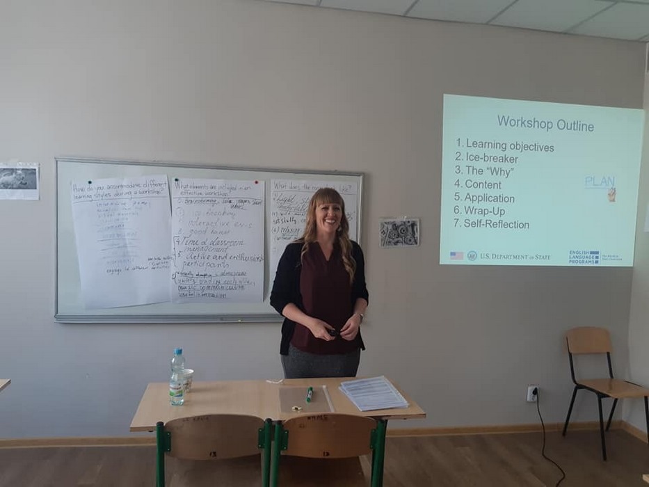 Венді Фінлейсон та її помічниця Маргарита Кожухевич, магістрантка Сумського державного педагогічного університету ім. А.С. Макаренка, провели для учасників столу два воркшопи: «Designing Active and Engaging Workshops» та «Engaging Students through Active Learning Strategies».