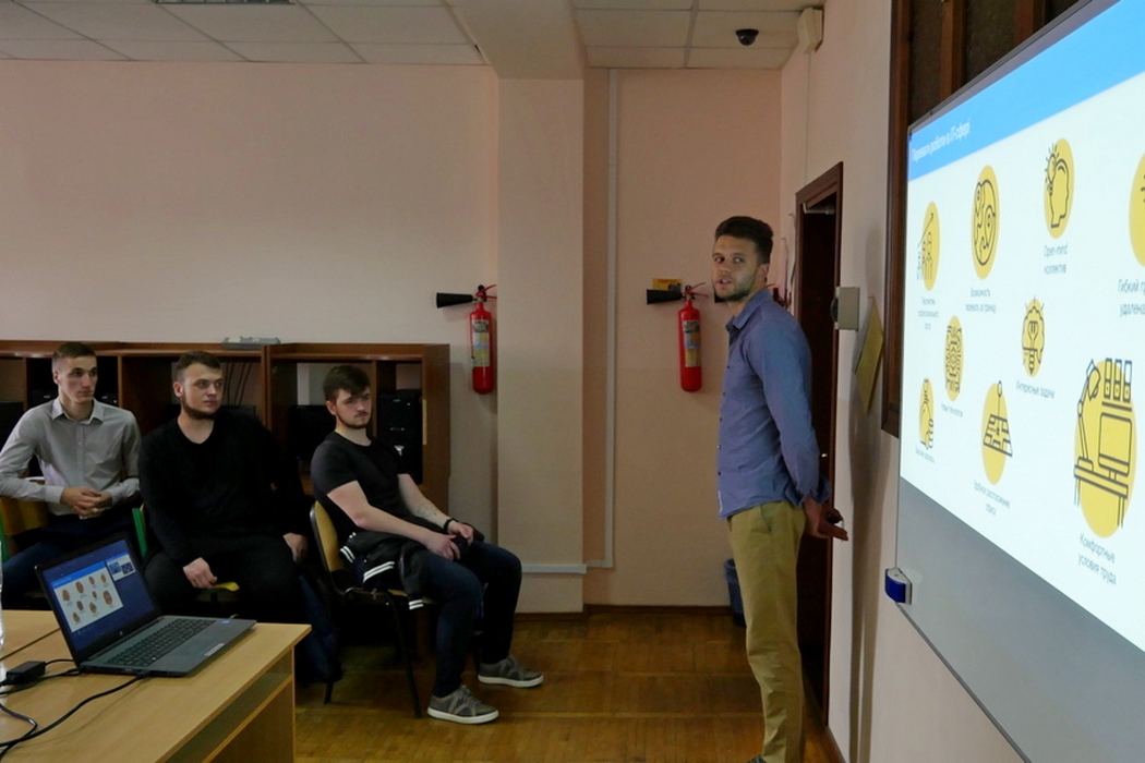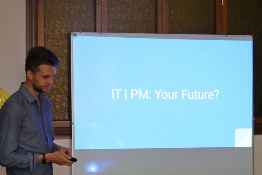 У ході спілкування з аудиторією доповідач окрему увагу приділив питанню «ІТ | PM: YOUR FUTURE?» Зокрема, зупинився на тому, коли і як він сам розпочинав свою роботу в ІТ-сфері, з якими початковими знаннями та вміннями він «стартував» на ІТ-ринку, відзначив основні переваги роботи в ІТ-галузі. Після чого докладніше зупинився на специфіці проектного менеджменту в ІТ-компаніях та найпопулярніших PM-технологіях, дав поради, як знайти свою нішу та побудувати кар’єру в ІТ-компанії. Наприкінці заходу Денис порадив молоді, що потрібно роботи, щоб бути успішним у будь-якій сфері: по-перше, слідкувати за здоров’ям, по-друге, займатися спортом, по-третє, постійно навчатись, бути професіоналом, чим би ти не займався, і, нарешті, не забувати думати!