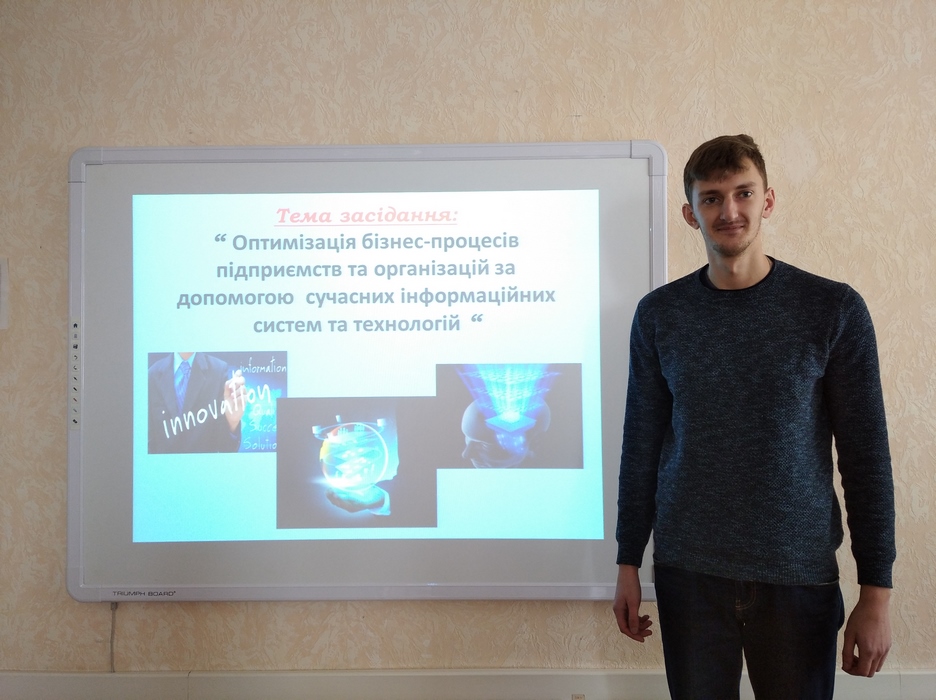 Тема засідання дискусійного клубу «Оптимізація бізнес-процесів підприємств та організацій за допомогою сучасних інформаційних систем та технологій». З доповідями виступили: фахівець з комп’ютерних інформаційних систем (університет м. Фенікс, штат Арізона, США) Джонатан Кларк та здобувачі гр.ЕК-41д: Косніцький С.А., Кулініч Р.С., Мельничук В.О., Цибульський В.М., Філіппов Ю.Ю. У результаті обговорення виступів здобувачів було прийнято рішення, що рівень проведеного дослідження у представлених доповідях відповідає всім необхідним вимогам та матеріал може бути рекомендований для друку у студентських науково-практичних конференціях.