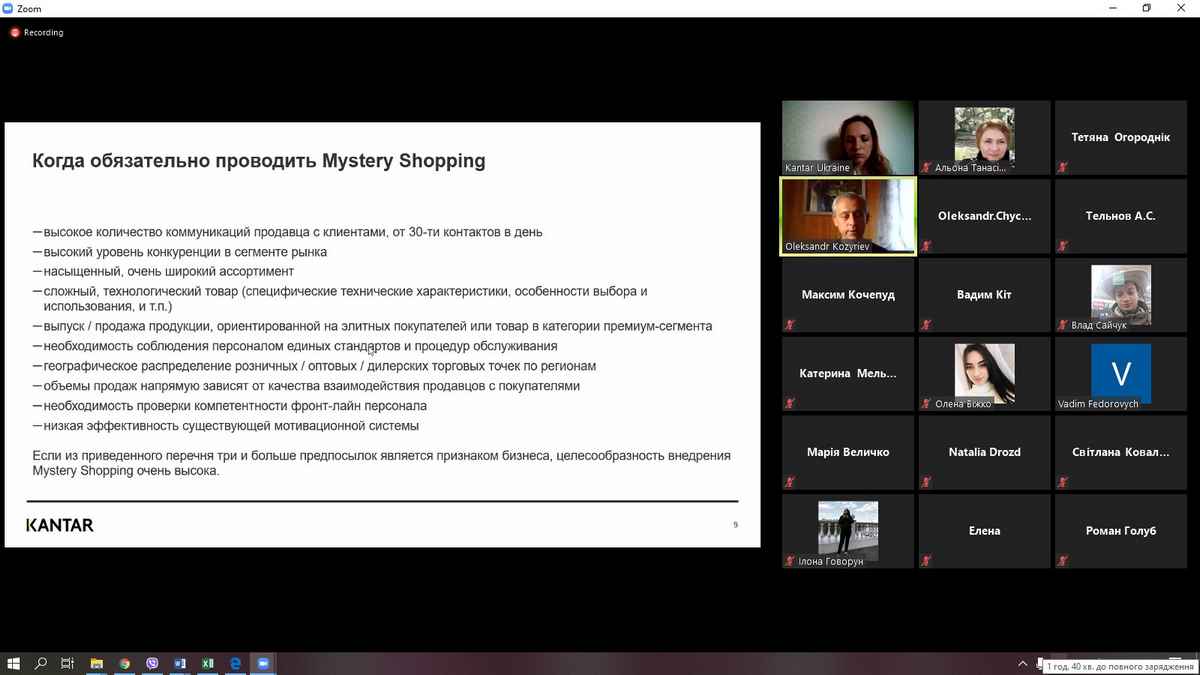 Щиро дякуємо Марині Костроміній та Олександру Козирєву за обмін досвідом, ознайомлення з механізмом застосування методів маркетингових досліджень "Містері шопінг" та результатами досліджень проведених в квітні 2020 року, практичні поради щодо підвищення професійного рівня!