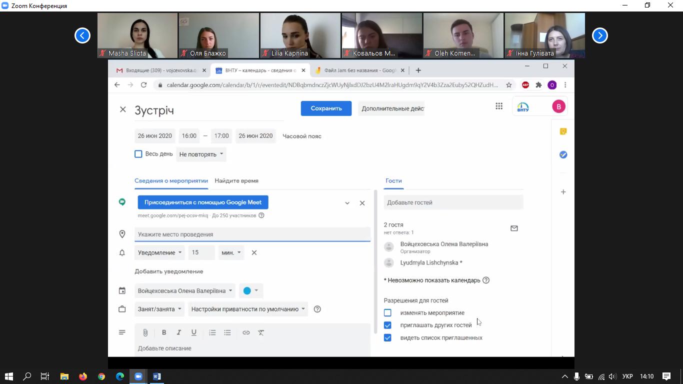 26 червня 2020 року на базі кафедри економічної кібернетики та інформаційних систем відбувся науково-практичний семінар на тему «Використання сервісів Google та хмарних технологій в навчальному процесі», який проходив в режимі on-line на платформі Zoom. В роботі семінару взяли участь викладачі Вінницького національного технічного університету, Вінницького торговельно-економічного інституту КНТЕУ та здобувачі освітнього ступеня «магістр» спеціальності «Економіка» спеціалізації «Економічна кібернетика».