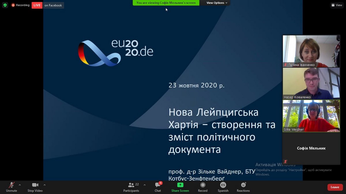 Родзинкою вебінару стала гостя заходу – Зільке Вайднер, співрозробниця оновленої Лейпцизької Хартії, професорка та докторка інженерних наук Бранденбургського технічного університету Котбус-Зенфтенберґ.