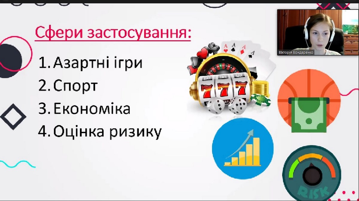 - Бондаренко Вікторія, гр. ІСТ-21д, доповідь на тему «Основні сфери застосування теорії ймовірностей».