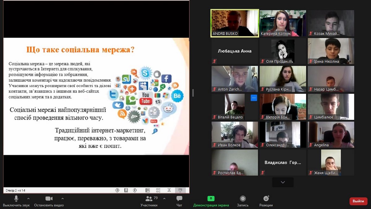 Всі доповіді були цікавими та різносторонніми, проте як найбільш ґрунтовні слід відзначити презентації Любацької Анни, Зарічнюка Антона, Облапінського Олександра та Бондаренко Вікторії. Всього в роботі конференції взяло участь 78 слухачів. Доповіді викликали жваве онлайн-обговорення серед студентів та викладачів.