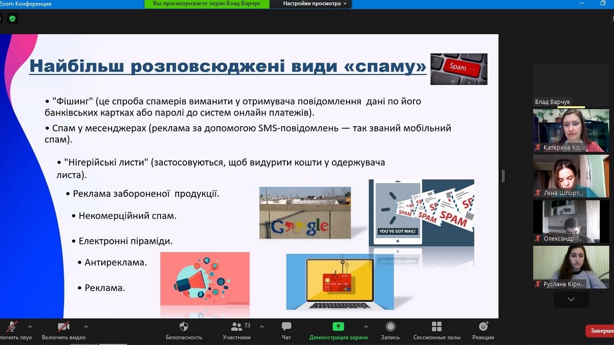 - Варчук Владислав, гр. ІСТ-31д, доповідь на тему «Дослідження методів та засобів протидії спаму»;