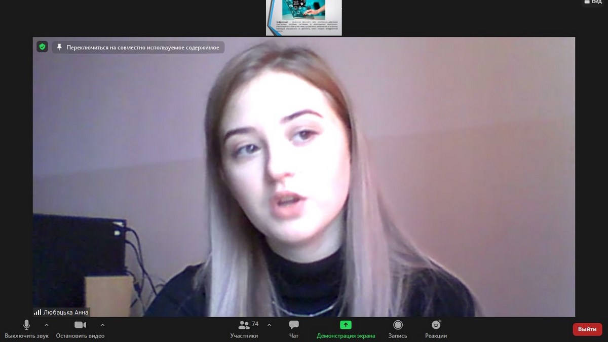- Любацька Анна, гр. Е-21д, доповідь на тему «Цифрова трансформація бізнесу»;