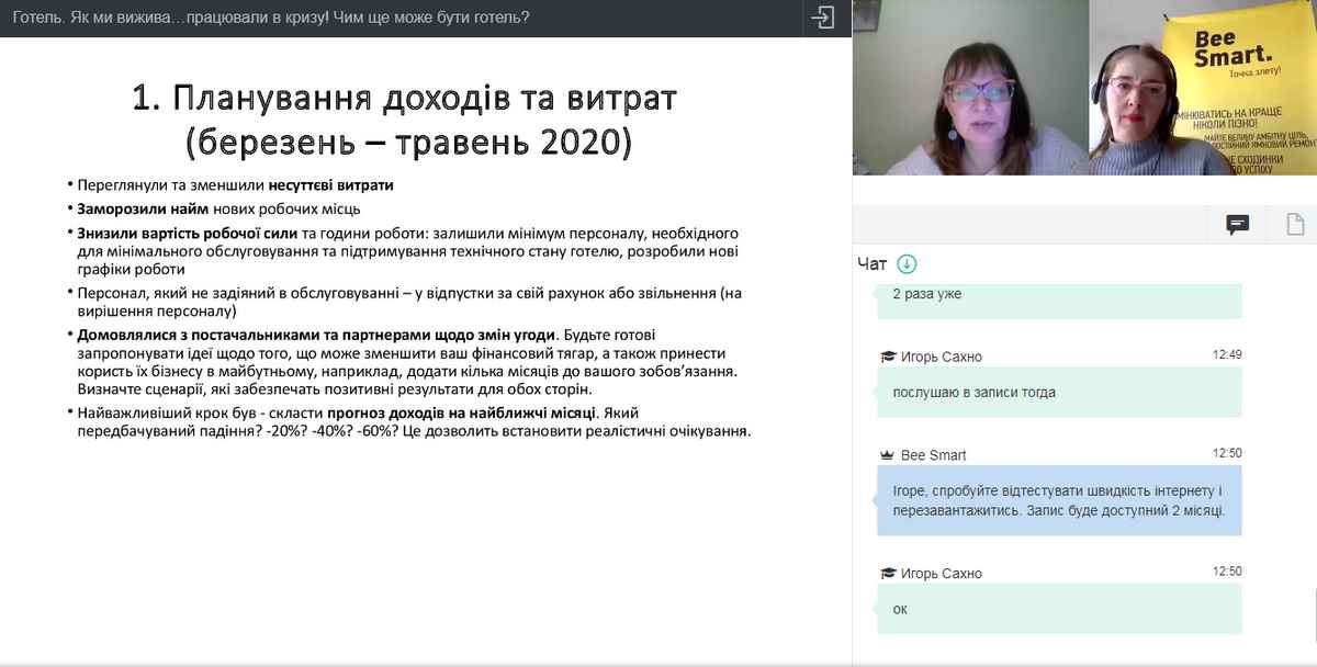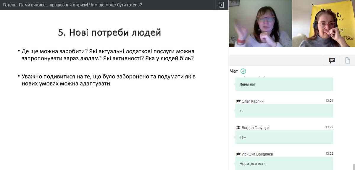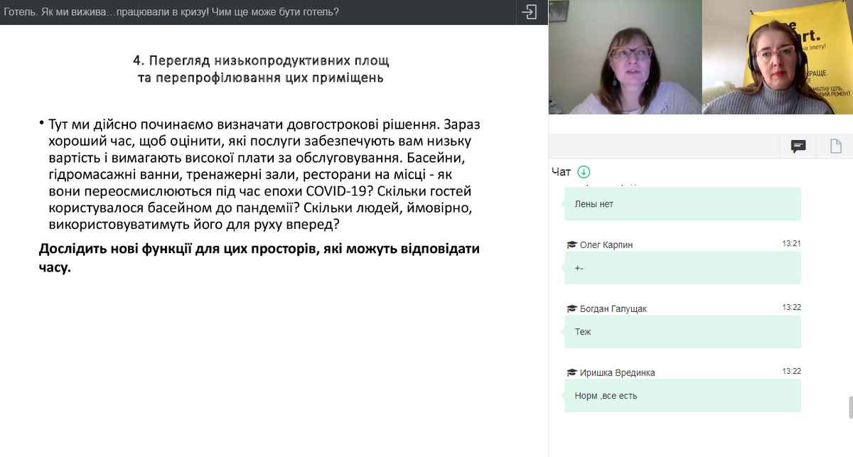 Науково-педагогічні працівники кафедри туризму та готельно-ресторанної справи та здобувачі вищої освіти взяли участь у вебінарі «Як ми вижава… працювали в кризу? Міський готель в Києві. Складні рішення і плани на майбутнє »