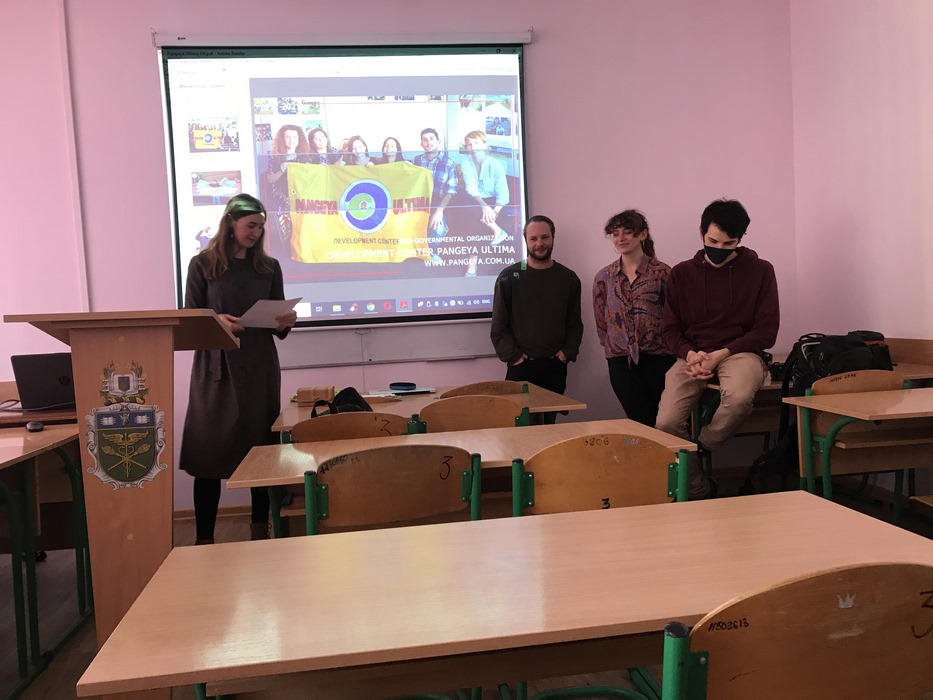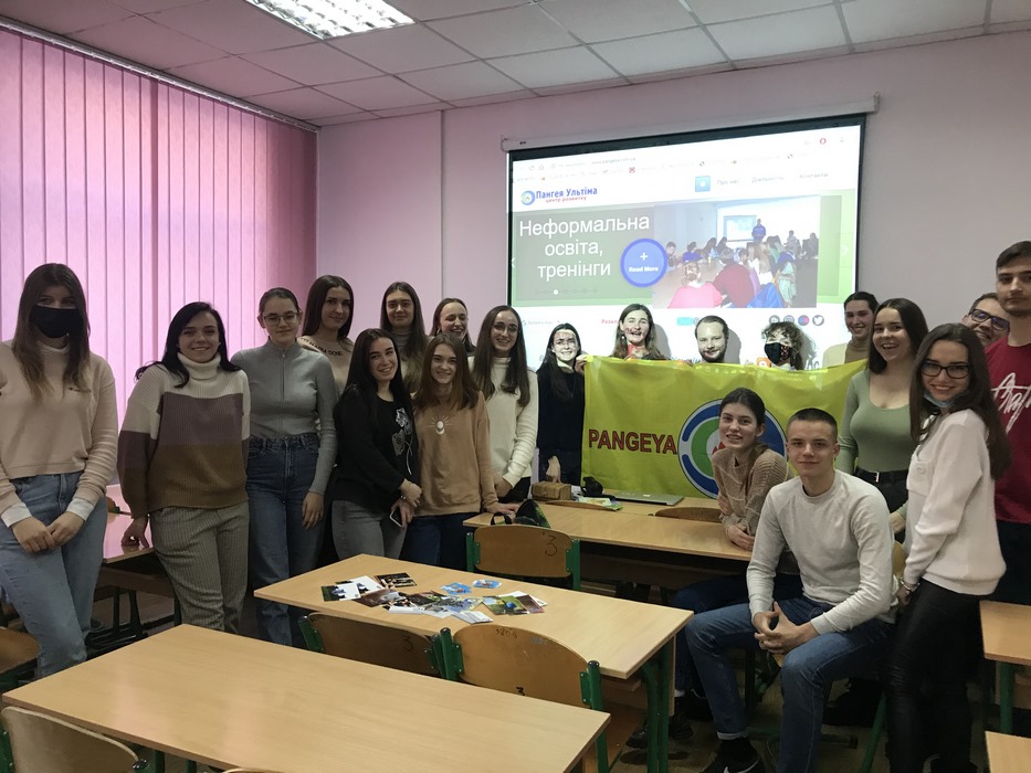 22 лютого 2021 року студенти спеціальності «Філологія» мали зустріч із очільницею Громадської організації «Центр розвитку Пангея Ультіма» Марією Геращенко. У полі діяльності організації – неформальна освіта та програми міжнародної молодіжної мобільності. Співпраця із Erasmus+ , міжнародними волонтерськими таборами (SCI, Bauorden), Польсько- та Литовсько-українською Молодіжною Радою Обмінів дає можливість пропонувати студентам різні форми для міжкультурного діалогу та розвитку soft skills. До зустрічі долучилися волонтери з Нідерландів та Італії, які перебувають у Вінниці за програмою Erasmus+. Запрошені поділилися зі студентами власним досвідом неформальної освіти та залученням до молодіжних проектів.