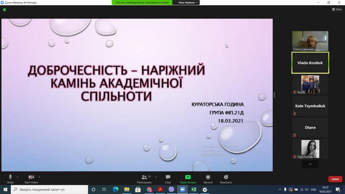 З 10 по 20 березня 2021 року студенти різних курсів спеціальностей 035 «Філологія», 071 «Облік і оподаткування» та 072 «Фінанси, банківська справа та страхування» освітніх ступенів «молодший бакалавр», «бакалавр» та «магістр» денної та вечірньої форм навчання були залучені до серії заходів, присвячених академічній доброчесності – своєрідному етичному кодексу академічної спільноти. Викладачами та студентами вкотре обговорювались основні засади та принципи академічної доброчесності відповідно до Положення про академічну доброчесність науково-педагогічних, педагогічних працівників та здобувачів вищої освіти ВТЕІ КНТЕУ, висвітлювались види та причини плагіату, базові правила цитування та поради щодо оформлення бібліографічних посилань під час виконання творчих робіт.