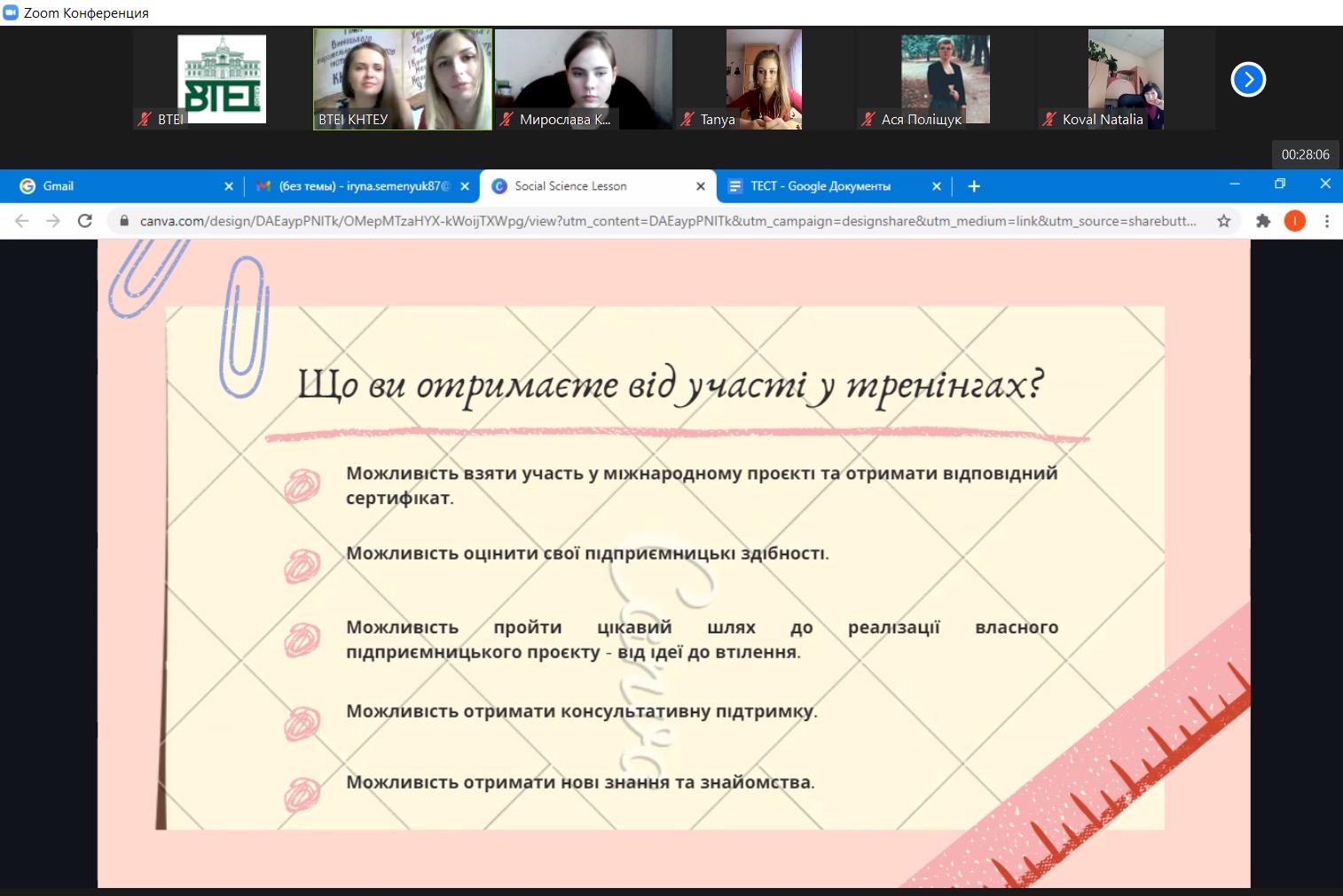 5 квітня 2021 року у ВТЕІ КНТЕУ відбувся перший тренінг «Розвиток підприємницьких soft skills» з циклу тренінгів проєкту «ENCOURAGING INTEGRATION FOR NEWLY ARRIVED IMMIGRANT WOMEN THROUGH ENTREPRENEURSHIP» (WECAN) (ERASMUS +) PROJECT NUMBER 2019-1-SE01-KA204-060421.