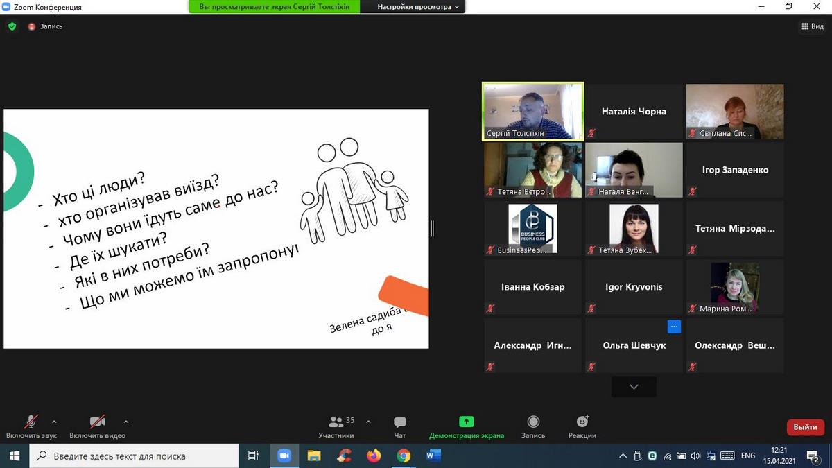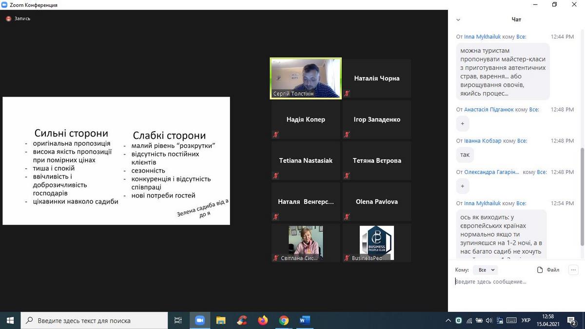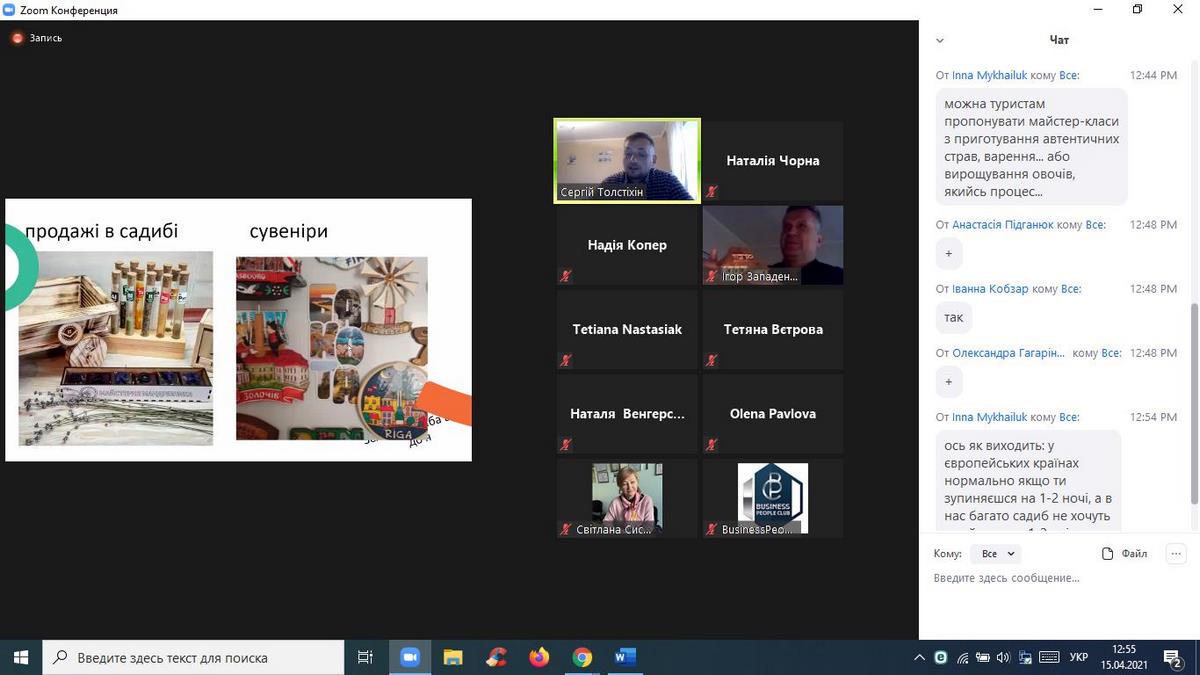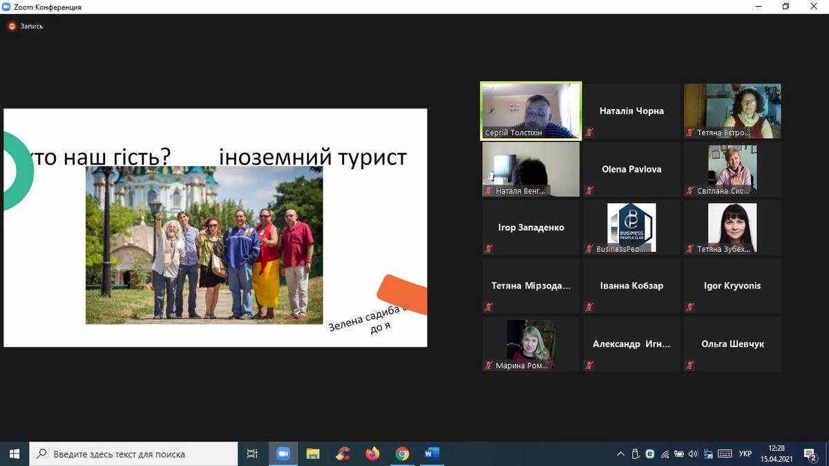 15 квітня 2021 року науково-педагогічні працівники кафедри туризму та готельно-ресторанної справи взяли участь в онлайн-вебінарі «Туризм в умовах Пандемії», організованому ГО «Business People Club». Доповідачем на заході виступив Сергій Толстіхін - експерт з розвитку туризму в громадах, веломандрівник, який відвідав 31 країну на велосипеді, креатор проєкту Green Ways - Зелені стежки України, координатор Спілки сприяння розвитку сільського зеленого туризму в Хмельницькій області, власник садиби "Дім мандрівника", проєктний менеджер Агенції сталого розвитку "Астар", комунікаційний координатор Всеукраїнської ініціативи "Активна Громада".