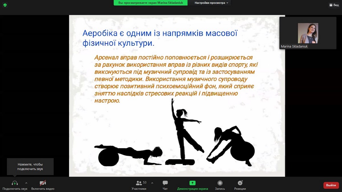 5.Складанюк Марина студентка ІІ курсу, група ФБСС-21 – «Засоби аеробіки у системі фізичного виховання студентської молоді» Науковий керівник: доцент Пуздимір Микола.