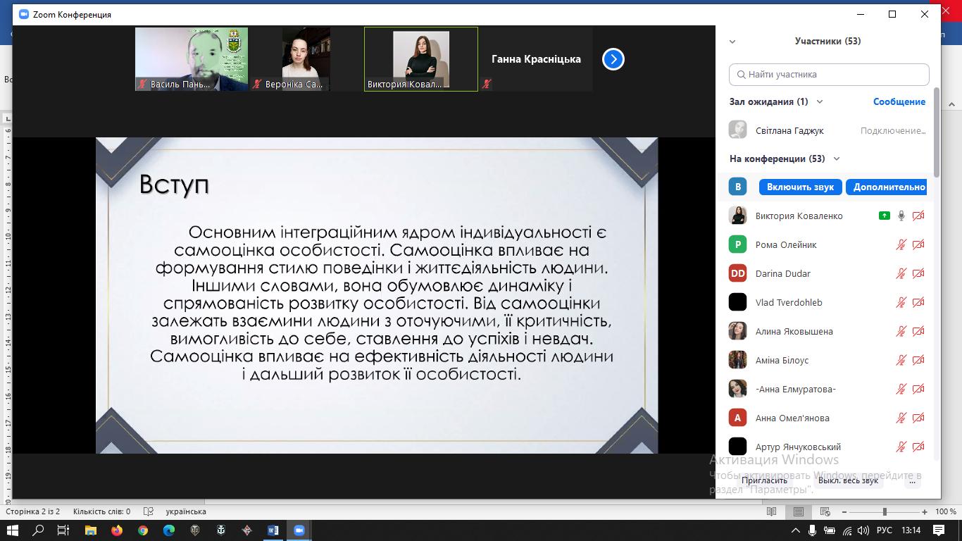 Коваленко Вікторія доповідь на тему «Вплив самооцінки у підлітковому віці на подальші життєві перспективи»