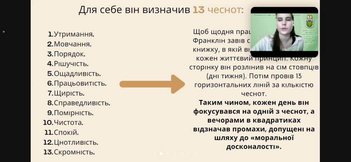1. Мирослава Коваль, гр. ПУА-21д, доповідь на тему «Планування робочого дня успішного керівника», виконана під науковим керівництвом к.е.н., доц. Наталії Махначової;