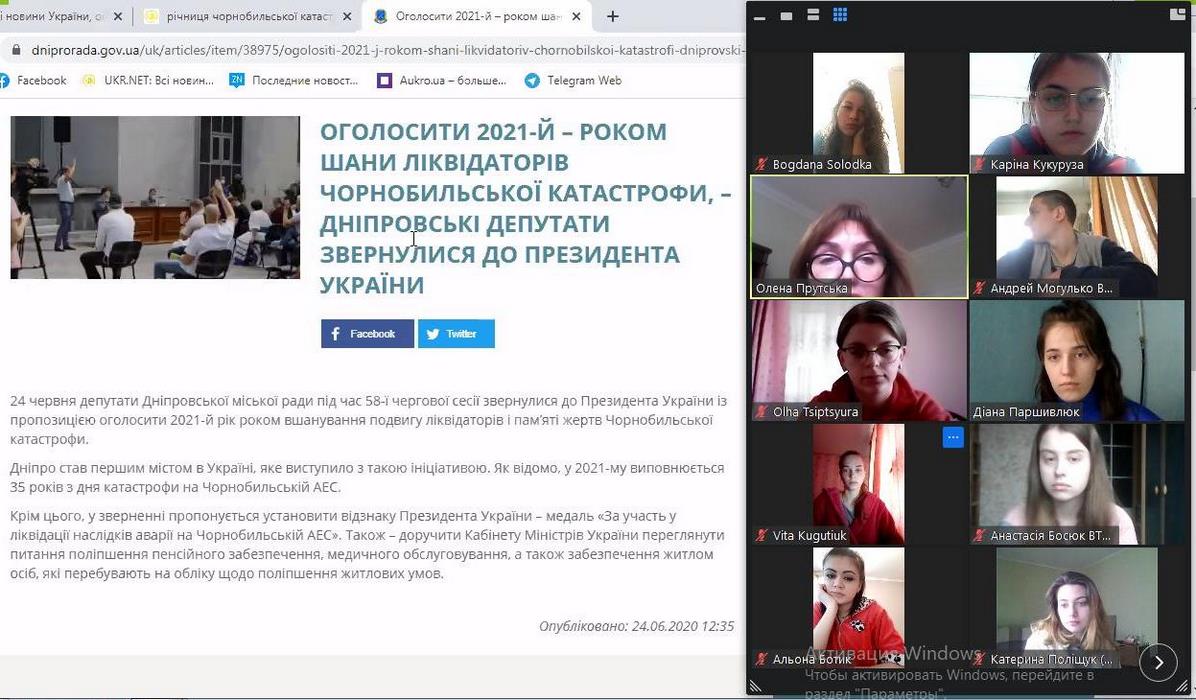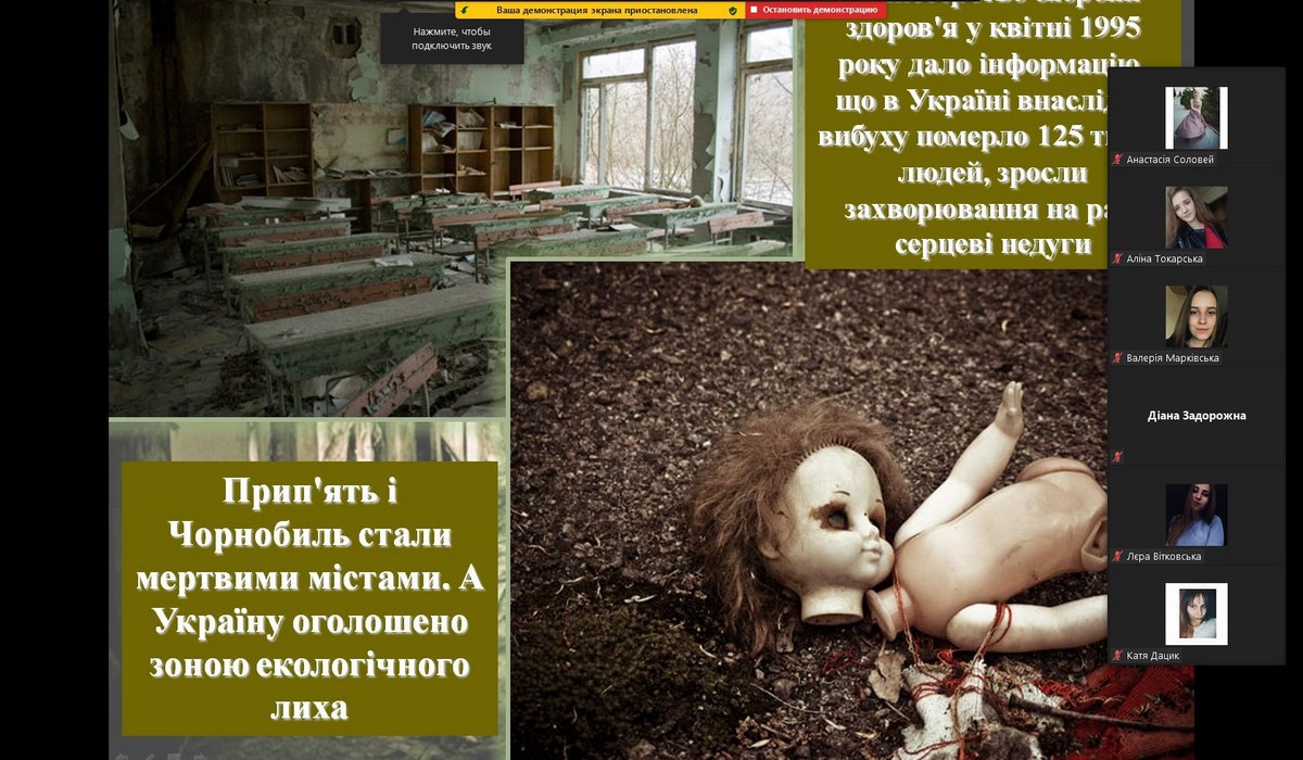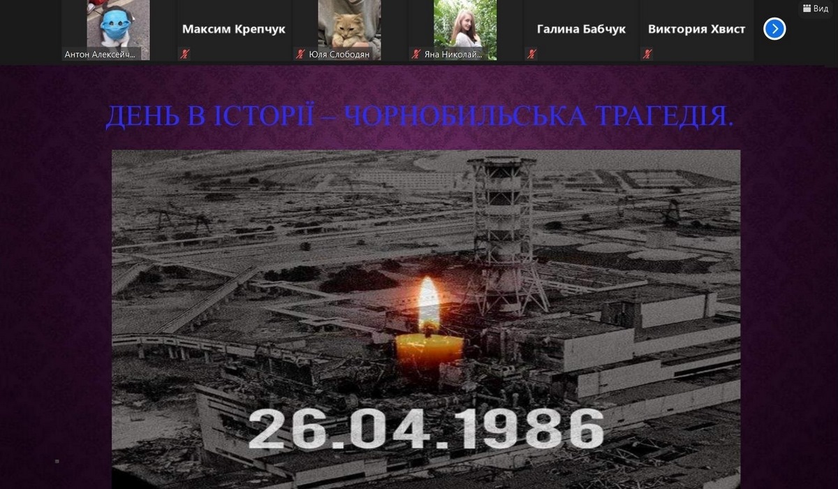 26 квітня 2021 року весь світ відзначає 35-ту річницю аварії на Чорнобильській АЕС. Протягом квітня на обліково-фінансовому факультеті Вінницького торговельно-економічного інституту КНТЕУ в режимі онлайн були проведені тематичні виховні заходи та години пам’яті, присвячені Дню Чорнобильської трагедії та Міжнародному дню пам’яті жертв радіаційних аварій та катастроф.