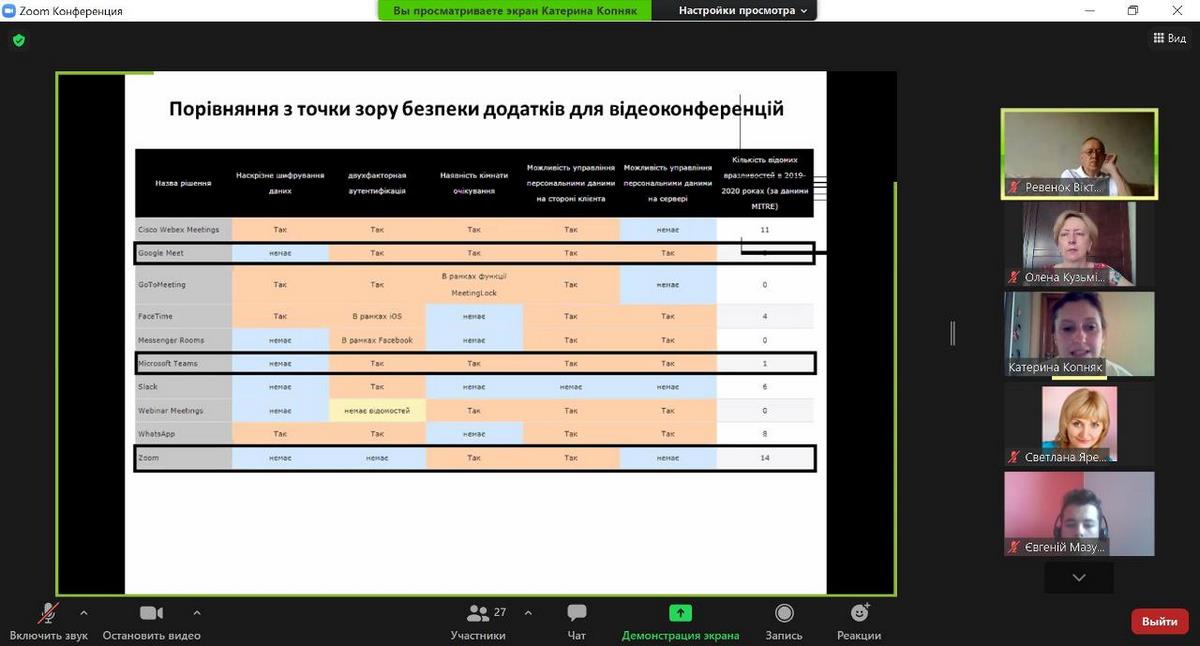 У ході семінару обговорювались актуальні в наш час питання використання інтерактивних мультимедійних робочих листів, реалізації електронного журналу викладача у різних закладах вищої освіти, впровадження сучасних освітніх середовищ та платформ для відеоконференцій в умовах дистанційного та змішаного навчання, а також засобів для проведення вебінарів та віддалених бізнес-нарад, порівняння їх можливостей тощо. Дякуємо колегам за обмін досвідом у реалізації передових освітніх технологій, методів, форм і засобів навчання!