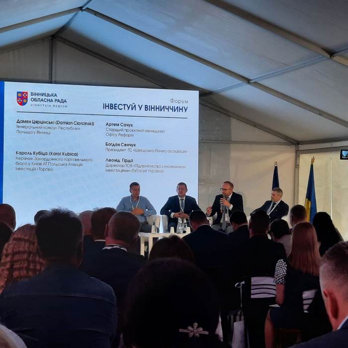 Панель 1 – Закордонні інвестиції і комфортні громади: як побудувати комфортний та ефективний діалог, під час якої спікери обговорювали діяльність підприємств з польськими інвестиціями на території Вінницької, Житомирської, Хмельницької і Чернівецької областей; Шведський та Австрійський досвід реалізації інвестиційних проєктів в Україні; визначили роль Польщі як торговельного партнера і перспективного напрямку інвестицій для українського Бізнесу; розглянули законодавчі аспекти формування індустріальних парків, що стануть якісними інвестиційними продуктами, привабливими для іноземних інвесторів.
