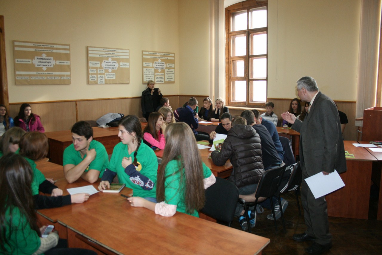 21 жовтня 2014 року в рамках святкування Днів факультету товарознавства, туризму та готельно-рестораної справи у Вінницькому торговельно-економічному інституті Київського національного торговельно-економічного університету кафедрою філософії та економічної теорії (зав. кафедри доктор історичних наук, професор Стопчак М.В.) був проведений брейн-ринг «Молодь у сучасному глобалізованому світі» між збірними командами ФТТГРС та ЗШ №16 і 29 Вінницької міської ради. Із вітальним словом до команд звернулася заступник декана факультету Рябенька М.О., яка розповіла учням про особливості навчання в інституті, про спеціальності, за якими проводиться підготовка на факультеті, про підготовку на базі інституту до ЗНО, надала рекламно-інформаційні матеріали. Власне, брейн-ринг пройшов у цікавій, безкомпромісній боротьбі: з мінімальною перевагою перемогла збірна команда студентів І курсу ФТТГРС.