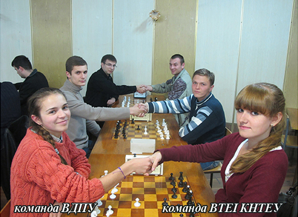 Загальнокомандне місце серед ВНЗ визначається за найменшою сумою місць – очок, показаними студентами команд з 10 видів для ВНЗ 1 групи і 7 видів для II групи. У змаганнях з шахів змагалось 7 збірних команд навчальних закладів. У складі команди нашого інституту виступали – Аліна Подольська, гр. ДФ-32 (4 перемоги, 1 нічия), Андрій Тарнавський, гр. ДФ-32 (1 перемога) і Вадим Пороховий, гр. ДФ-22 (1 перемога). Представляла команду інституту асистент кафедри психології, соціології та права Світлана Сальникова. В результаті проведених змагань наша команда набрала 6,5 очок і зайняла 5 місце, випередивши команди ВДПУ і Вінницького навчально-наукового економічного інституту Тернопільського національного економічного університету.