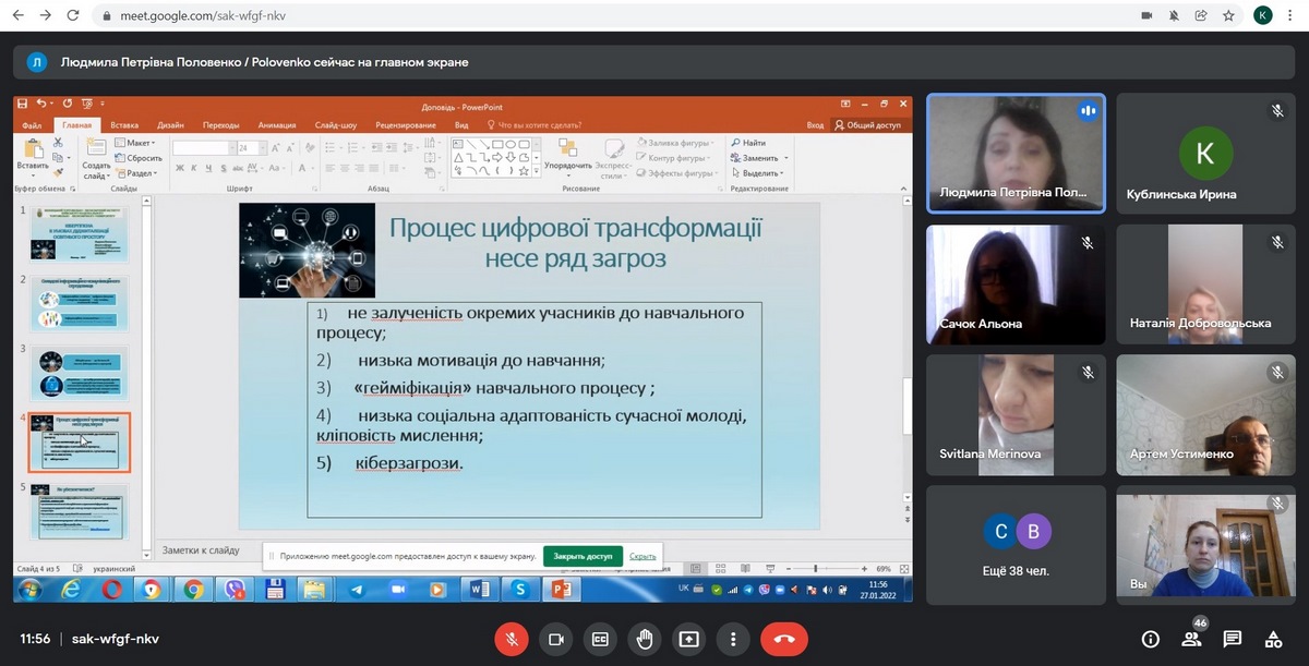 Цьогорічна проблематика конференції – модель діджиталізації сучасного закладу фахової передвищої освіти. У ході пленарного засідання власним досвідом цифровізації освітнього процесу поділились викладачі різних навчальних закладів. З цікавою та актуальною доповіддю «Кібергігієна в умовах діджиталізації освітнього простору» виступила доцент кафедри економічної кібернетики та інформаційних систем ВТЕІ КНТЕУ, кандидат педагогічних наук Людмила Половенко.
