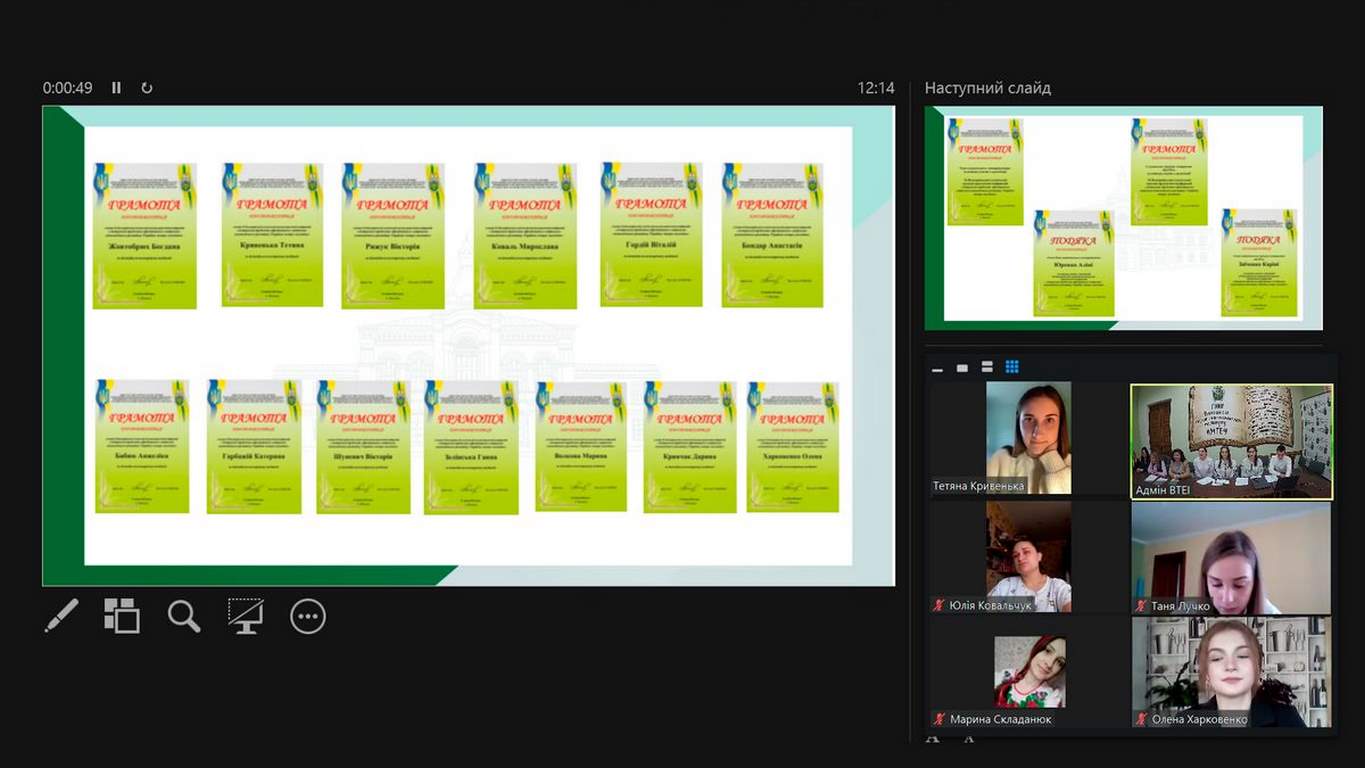 Грамотами нагороджено Раду студентського самоврядування та Студентське наукове товариство «ВАТРА». Голова РСС Юренко Аліна, Голова СНТ «ВАТРА» Каріна Заїченко та члени СНТ «ВАТРА» – секретарі секційних засідань відзначені Подяками.