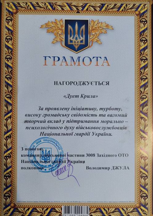 Дует "Крила" та Вікторія Гнатюк подарували свої пісні військовослужбовцям Національної гвардії України