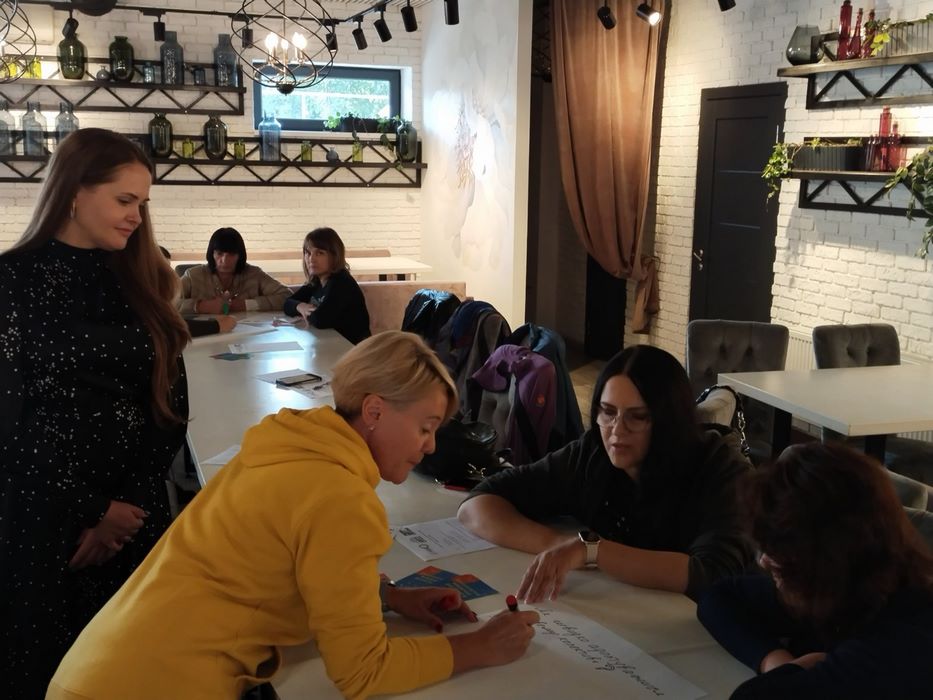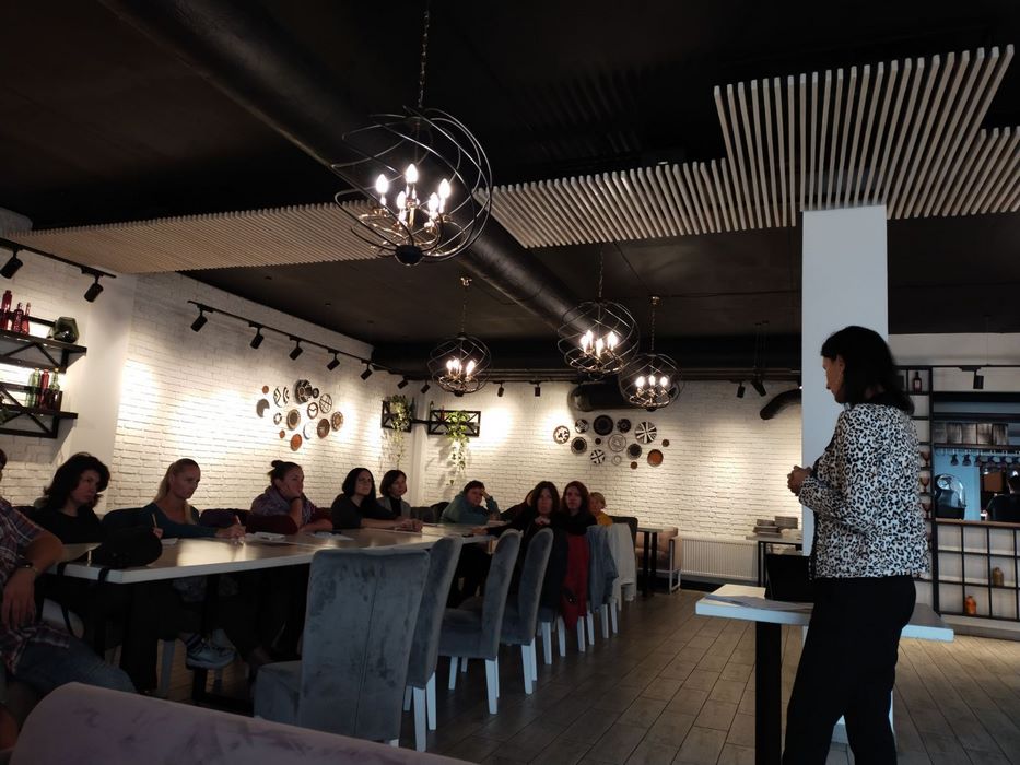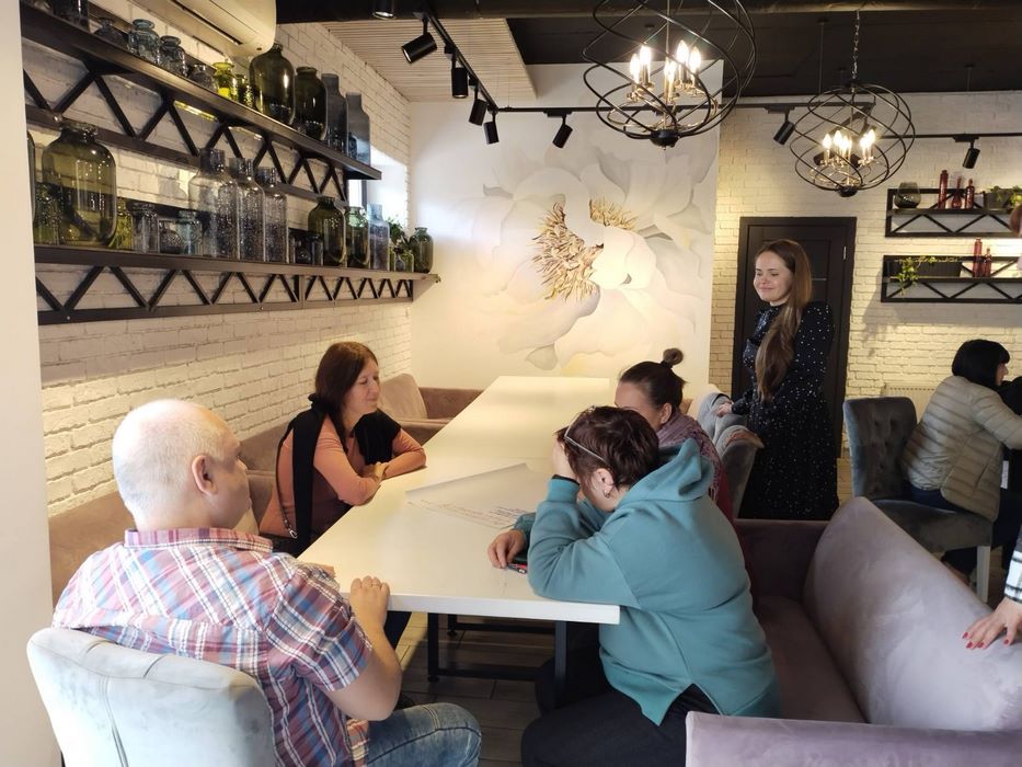 Під час інтеграційної зустрічі учасники заходу брали участь у тренінгу «Формування командної взаємодії внутрішньо переміщених осіб на новому місці роботи», який супроводжувався обговоренням базових принципів командної взаємодії, сучасних аспектів командної роботи оф лайн та онлайн, формування компонентів командної роботи внутрішньо переміщених осіб, оцінюванням можливостей учасників тренінгу чи здатні вони до командної роботи.