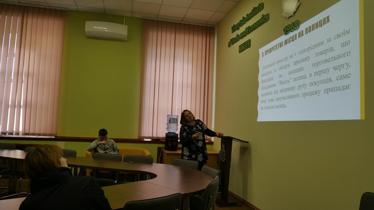 26 вересня 2022 року у Вінницькому торговельно-економічному інституті ДТЕУ в рамках вивчення курсу за вибором «Соціальне шкільне підприємництво» для учнів 10-В класу комунального закладу «Вінницький ліцей № 4 ім. Д. І. Менделєєва» проведено лекційне заняття на тему «Сучасний мерчандайзинг». Захід провела старший викладач кафедри маркетингу та реклами ВТЕІ ДТЕУ Людмила Середницька. Під час лекційного заняття школярі отримали знання про сучасні методи розміщення та викладки товарів у торговельному залі, а також дізналися як ці фактори впливають на прийняття рішень потенційним покупцем.