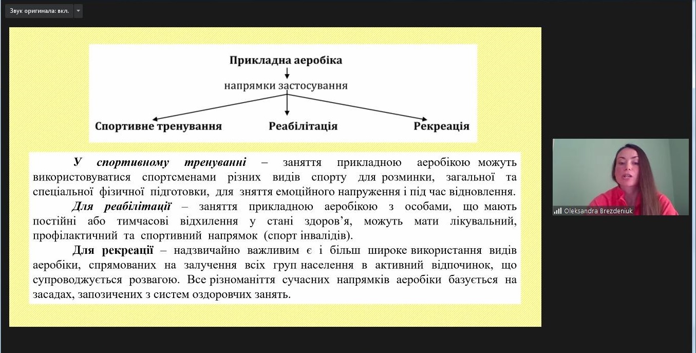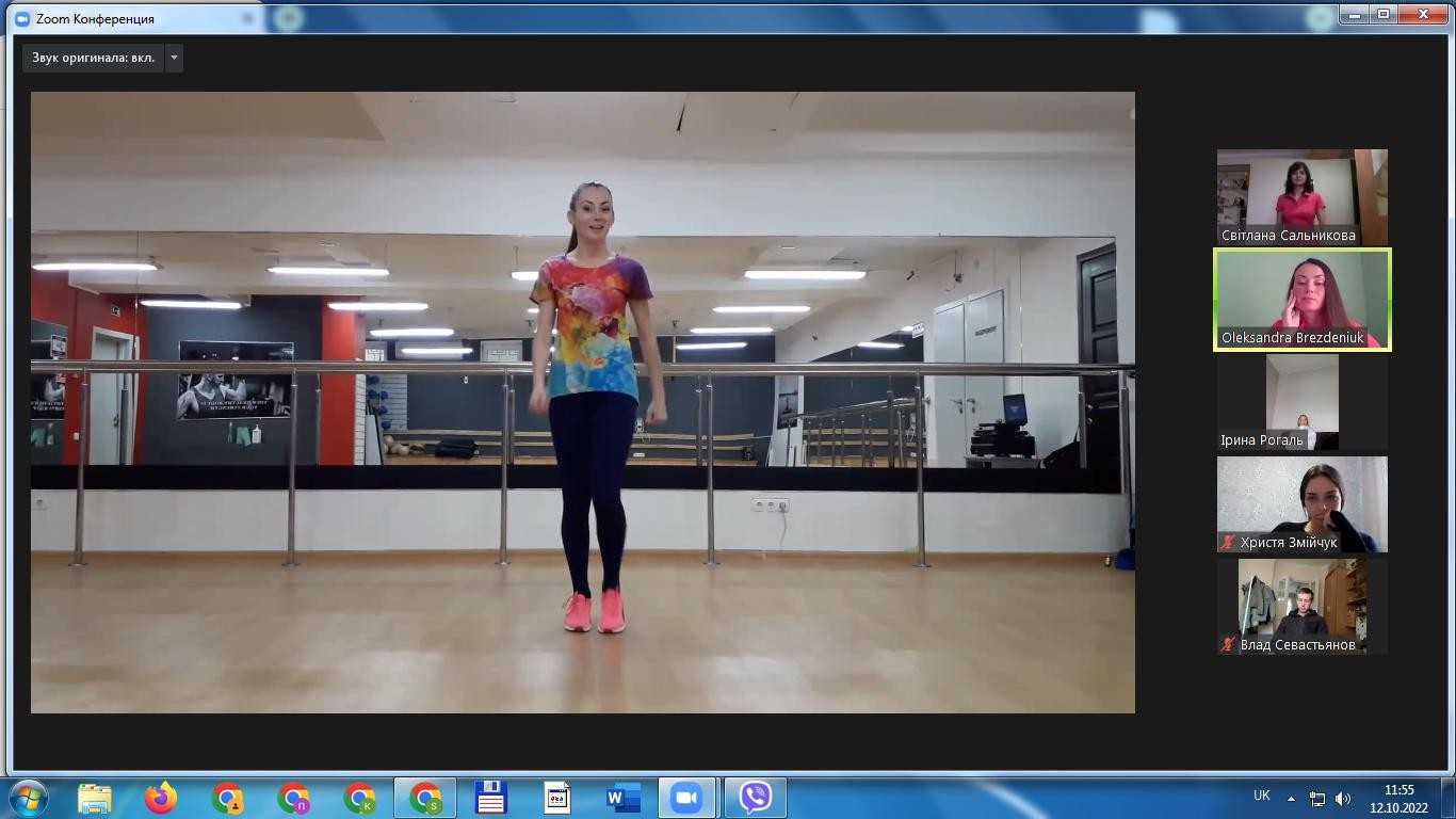12 жовтня 2022 року кафедрою фізичного виховання та спорту за участі Олександри Брезденюк, кандидата наук з фізичного виховання і спорту, завідувача кафедри фізичного виховання ВДПУ ім. Михайла Коцюбинського, доцента, фітнес-тренера проведено майстер-клас з аеробіки «Базові кроки аеробіки».