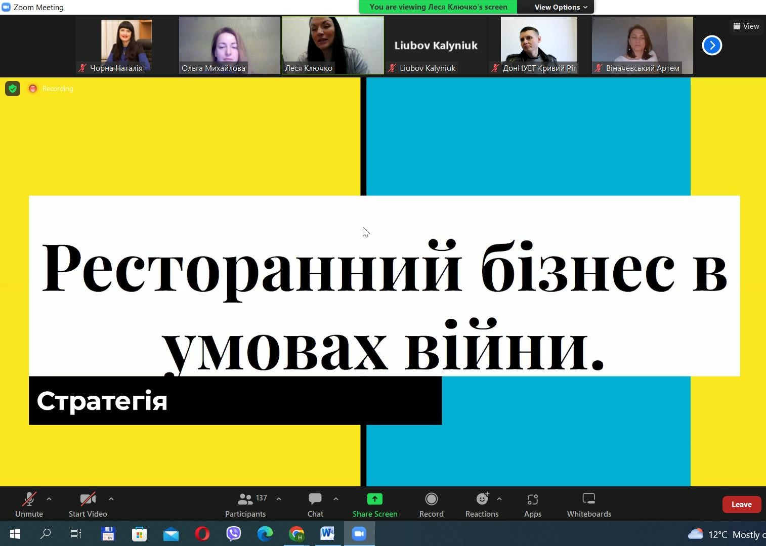 Науково-педагогічні працівники та здобувачі вищої освіти взяли участь в онлайн-зустрічі «Ресторанний бізнес в умовах війни»