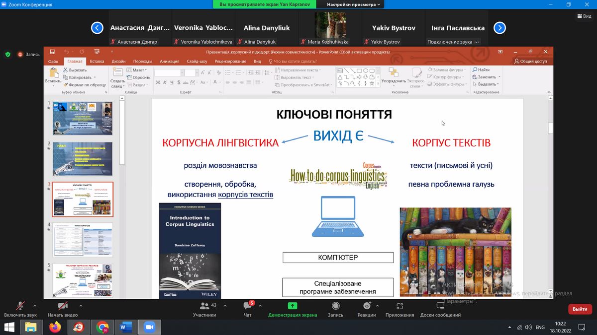 Спікер поділився кращими практиками створення та використання сучасних корпусів текстів, проілюстрував функціонал British National Corpus (BNC) та Генерального регіонально анотованого корпусу української мови (ГРАК), відповів на запитання студентів та викладачів.